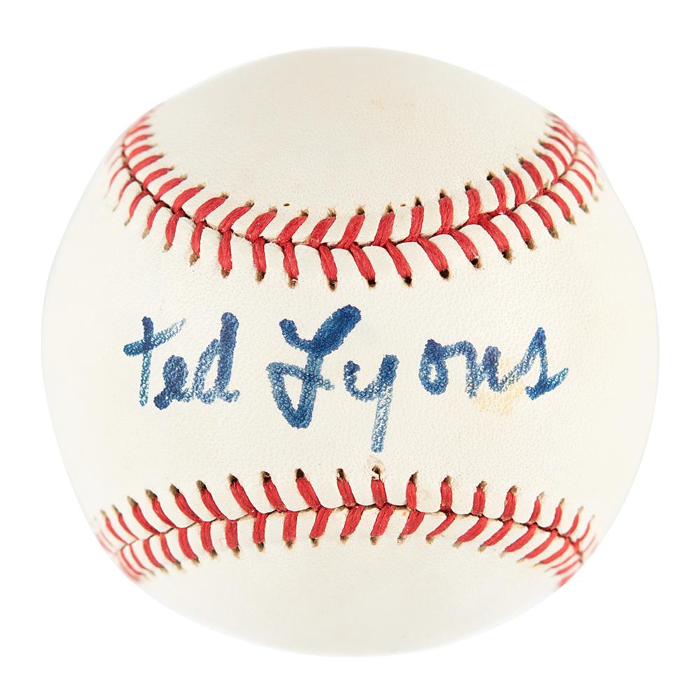 Rawlings Official League baseball signed in black felt tip on the sweet spot by Ted Lyons. In fine condition.