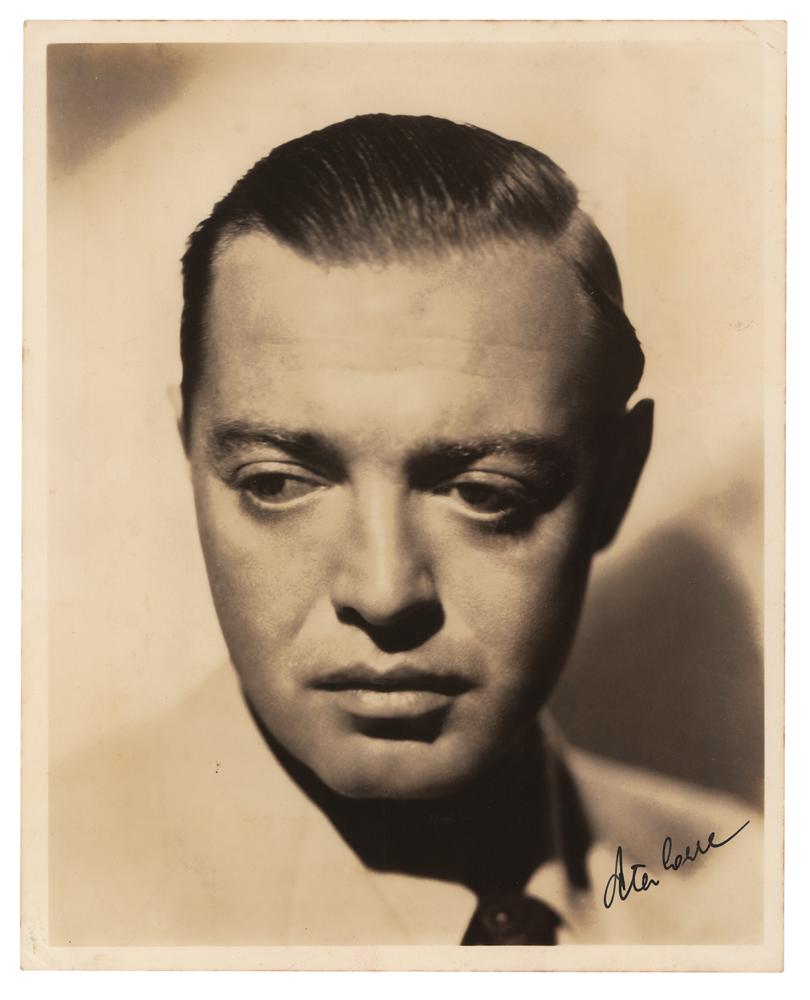 Vintage sepia matte-finish 8 x 10 close-up photo of the leading man in a handsome early pose, signed in fountain pen by Peter Lorre. In very fine condition. A classic portrait of the young actor.