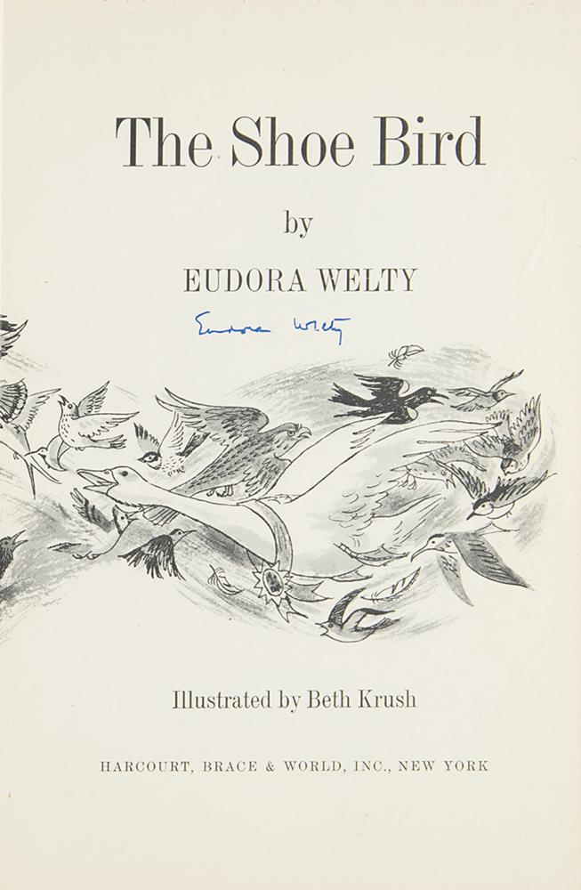 The Shoe Bird by Eudora Welty. First edition. NY: Harcourt, Brace & World, 1964. Hardcover with professionally restored dust jacket, 6.25 x 9.25, 88 pages. Signed on the title page in blue ink, “Eudora Welty.” In overall very good to fine condition, with some spine wear to the Bradbury book. An appealing union of uncommon children’s books.