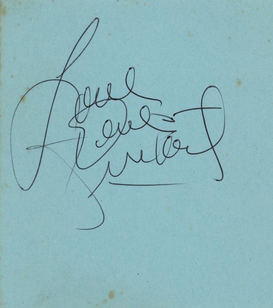 Vintage ballpoint signature, "Love, Gene Vincent,” on a blue 3.75 x 4.725 album page. In fine condition. Accompanied by a certificate of authenticity from Tracks.