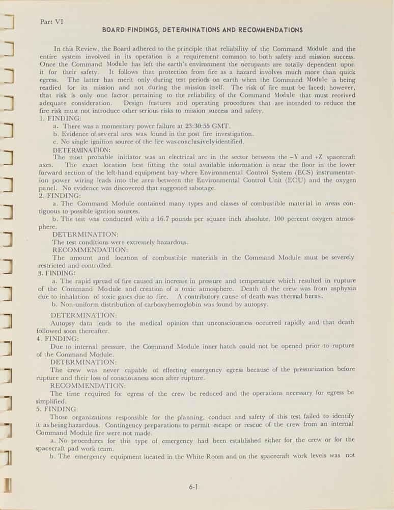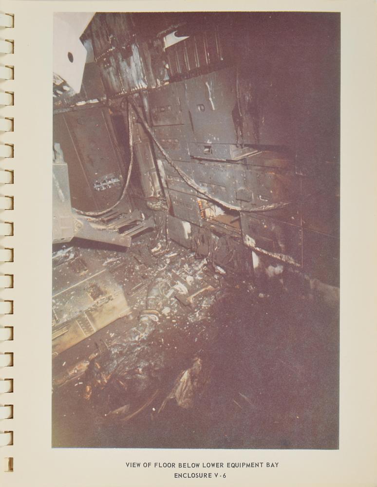 Scarce NASA-printed manual for the “Report of Apollo 204 Review Board to the Administrator National Aeronautics and Space Administration,” 8.5 x 10.75, 114 pages (with supplementary pages featuring color images and diagrams of the Apollo 1 accident and capsule), April 5, 1967. The review board was charged with the responsibility of reviewing the circumstances surrounding the Apollo 1 (AS-204) accident, reporting its findings relating to the cause of the accident, and formulating recommendations so that inherent hazards are reduced to a minimum. The manual consists of six parts: Authority; Biographies; Board; History of the Accident; Investigation and Analysis; and Findings, Determinations and Recommendations. The lower left front cover annotated in blue felt tip: “J. King, KSC P10, BA-1.” In fine condition.