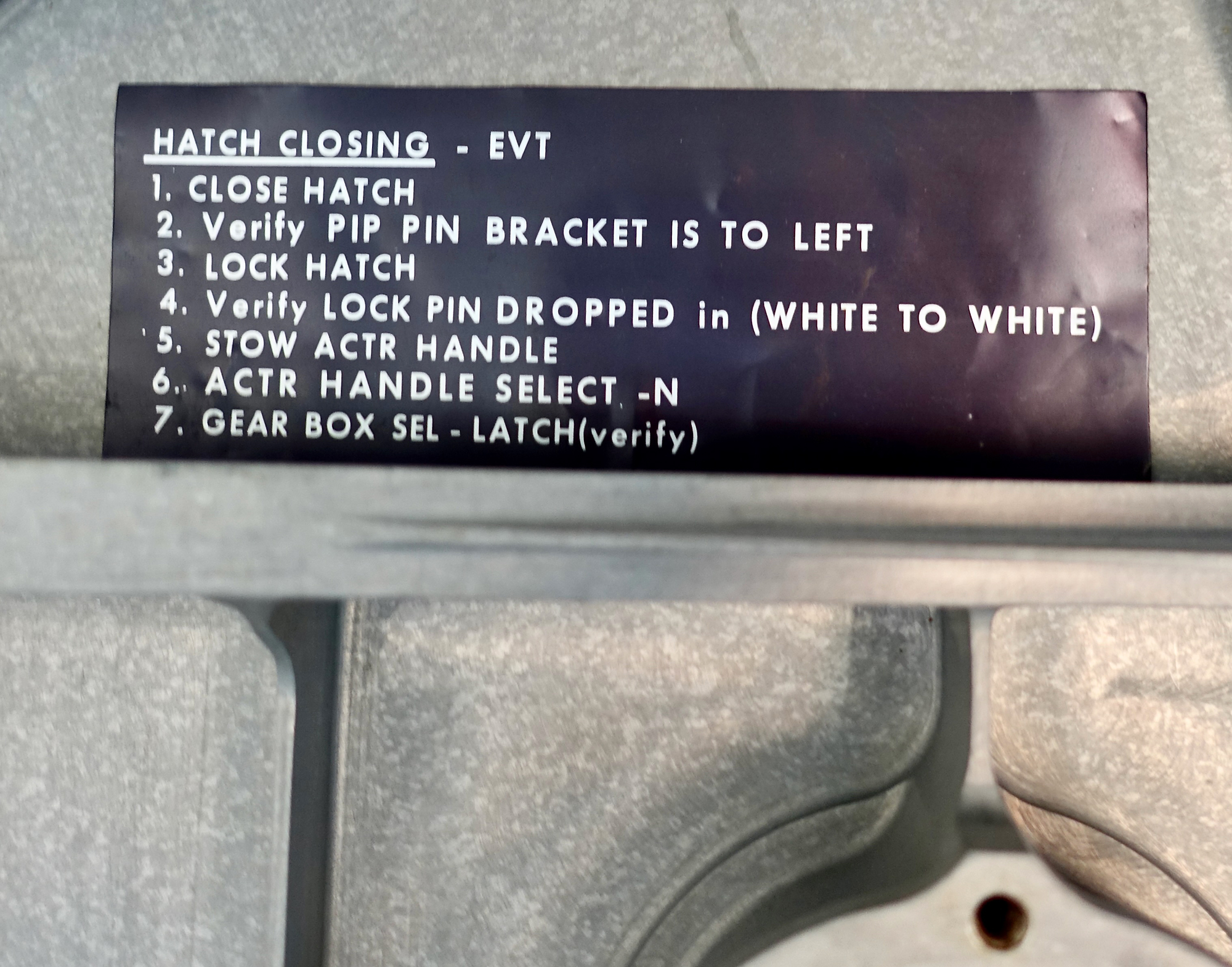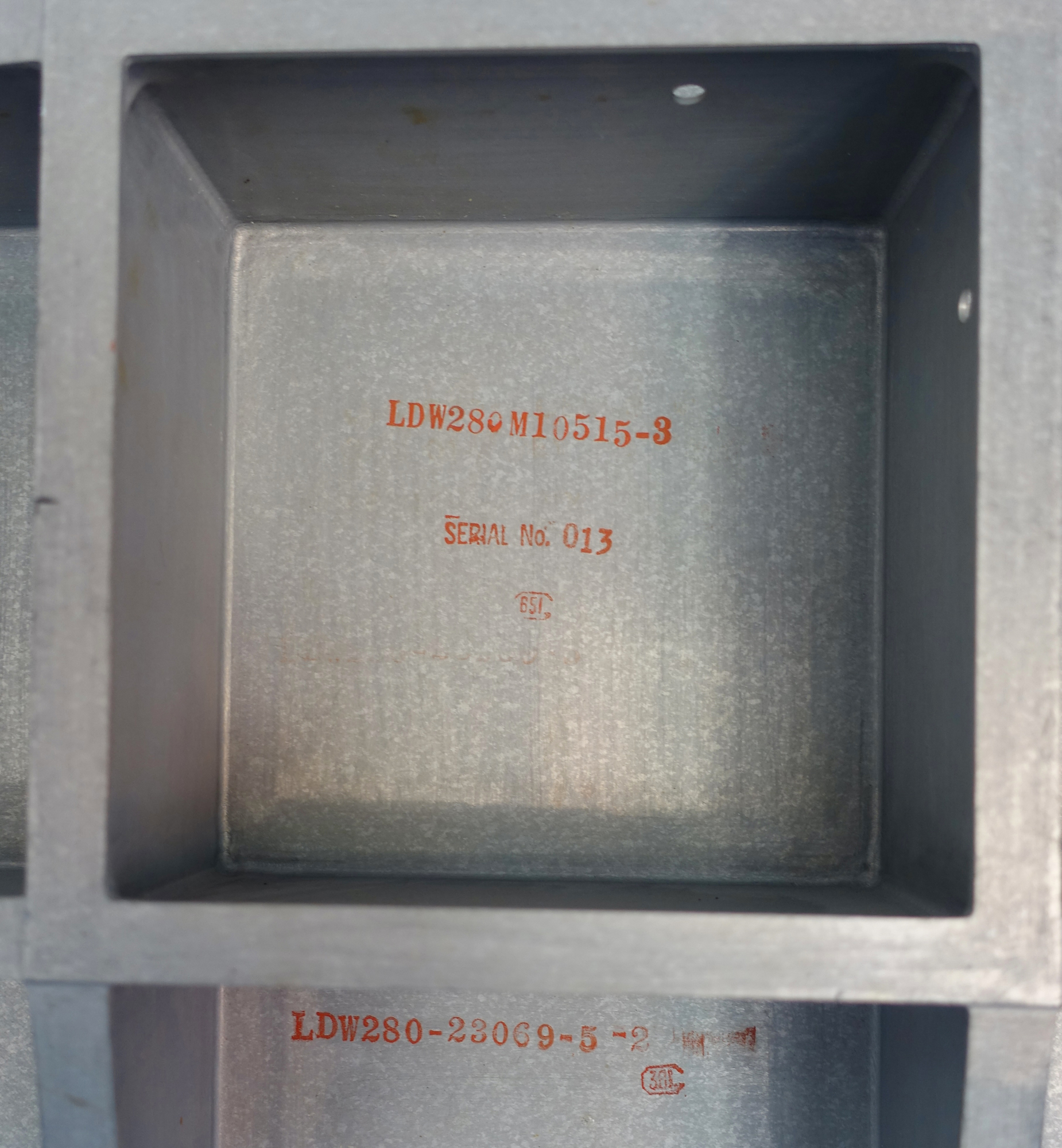 Rare Lunar Module Upper Docking Tunnel Hatch manufactured by Grumman as a developmental or test article circa 1967-1968, measuring 31.5″ x 43.5″ x 3″, with numerous part numbers stenciled in red, beginning with the "LDW280" prefix denoting Lunar Module, including: "LDW 280M10515-3, Serial No. 13," "LDW 280-23069-5-2," "LDW 280 11788-23 16," and "LDW 280 10727-17." A metal tag labeled “Hatch Closing — EVT” with instructions, obtained separately, has been applied to the hatch. The hatch would swing inwards into the LM crew quarters, allowing the astronauts to pass through the docking tunnel between the LM and CSM. A fantastic Grumman-manufactured piece of large, mission-critical Lunar Module hardware. Consignor notes that this originated from the famous Charlie Bell space auction held in March 2000.