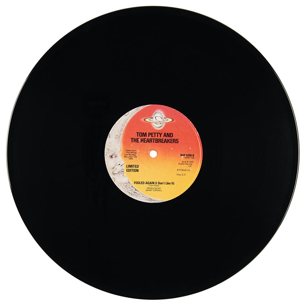 Limited edition Shelter Records 12-inch single record for ‘Anything That's Rock 'n' Roll / Fooled Again (I Don't Like It)’ by Tom Petty and the Heartbreakers, who have all signed nicely in ballpoint on the front of the sleeve: Tom Petty, Stan Lynch, Mike Campbell, Ron Blair, and Benmont Tench. In fine condition. The record is included.