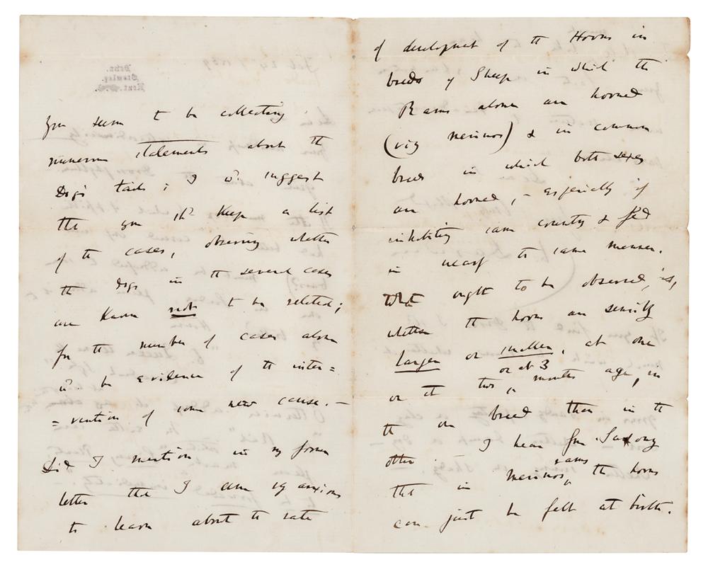 Outstanding series of Darwin's scientific letters on tailless dogs and rare carnivorous plants