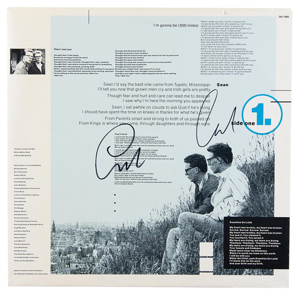 Sunshine on Leith album signed on the front cover in black felt tip by Craig Reid and Charlie Reid, and also signed on the inner sleeve by both. In fine condition. The record is included.