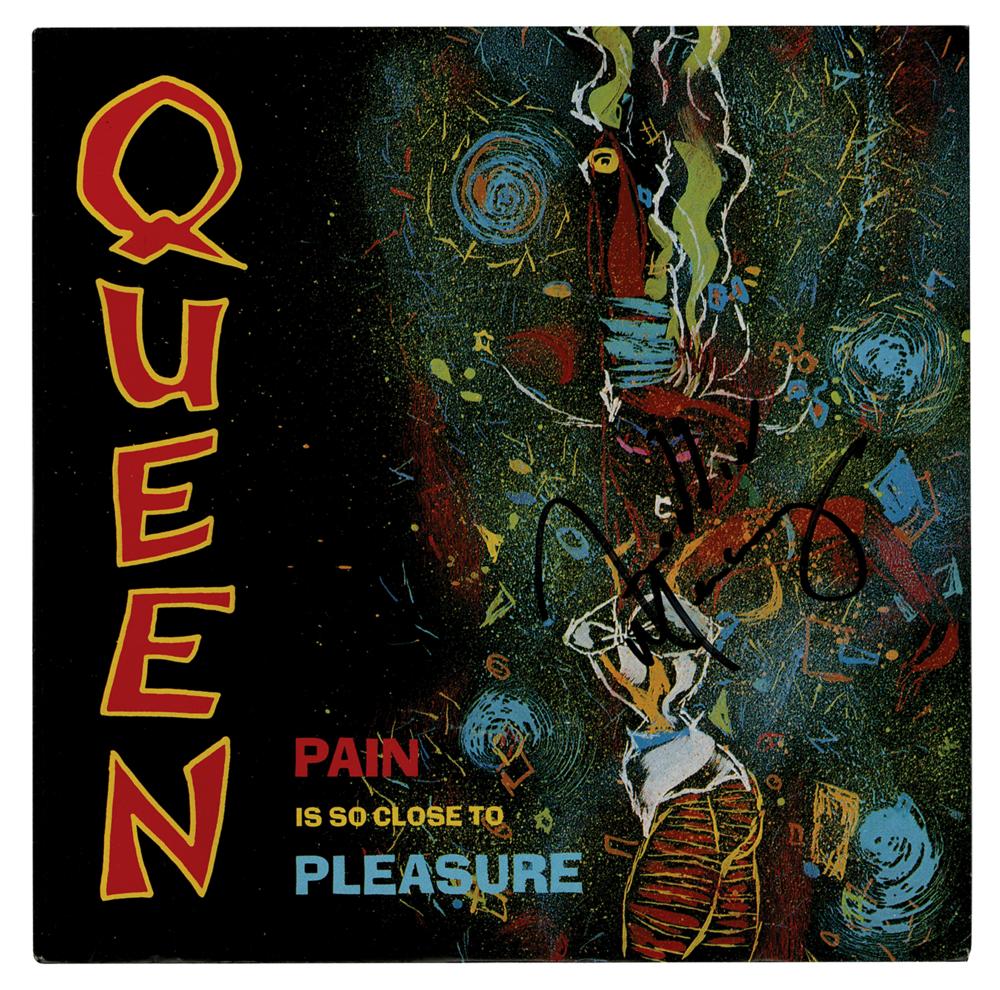 EMI Records 45 RPM record for the single ‘Pain Is So Close to Pleasure / Don't Lose Your Head’ by Queen, signed nicely on the front cover in black felt tip by Freddie Mercury. In fine condition. The record is included.