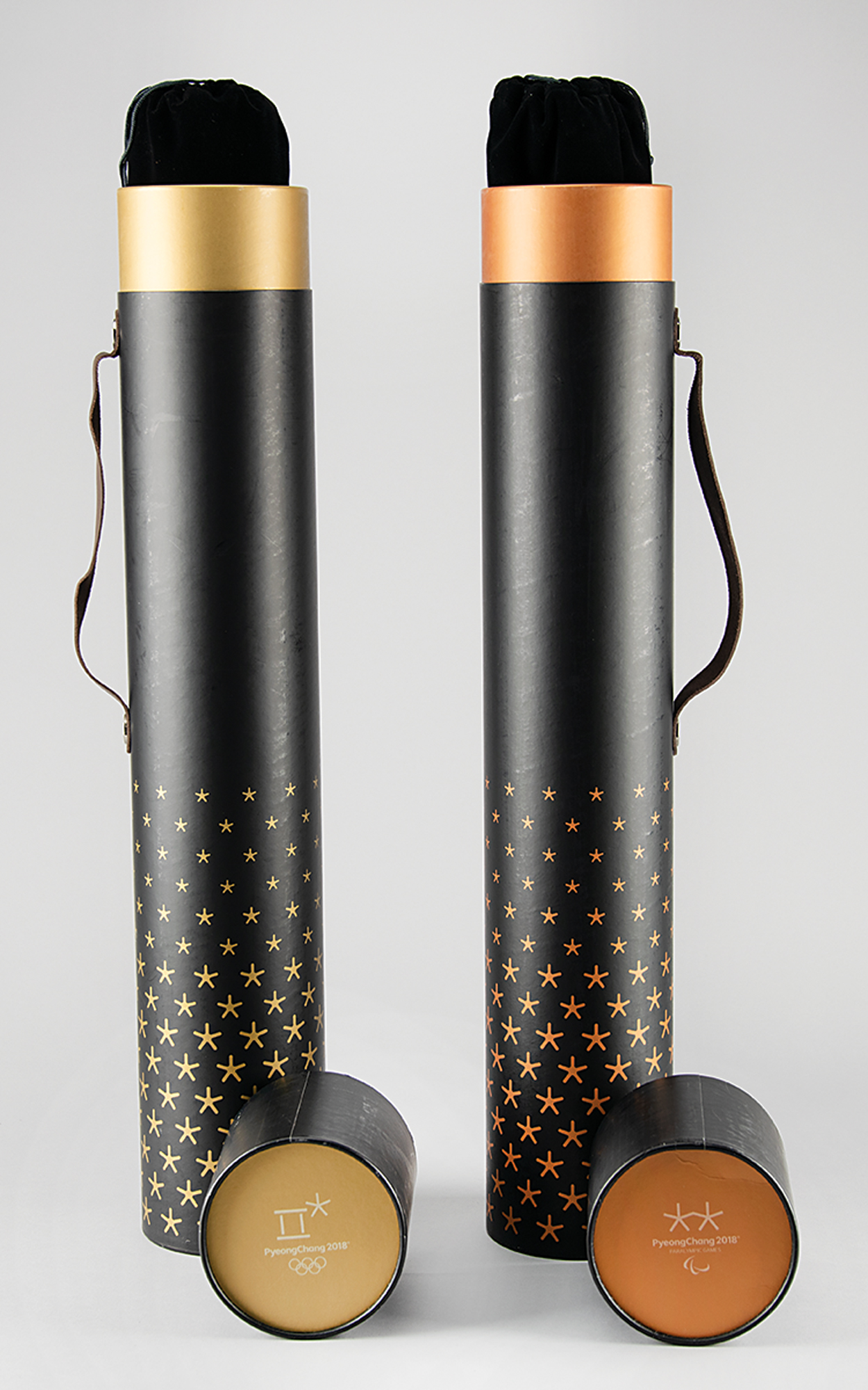 The official torches of the PyeongChang 2018 Winter Olympics and Paralympics