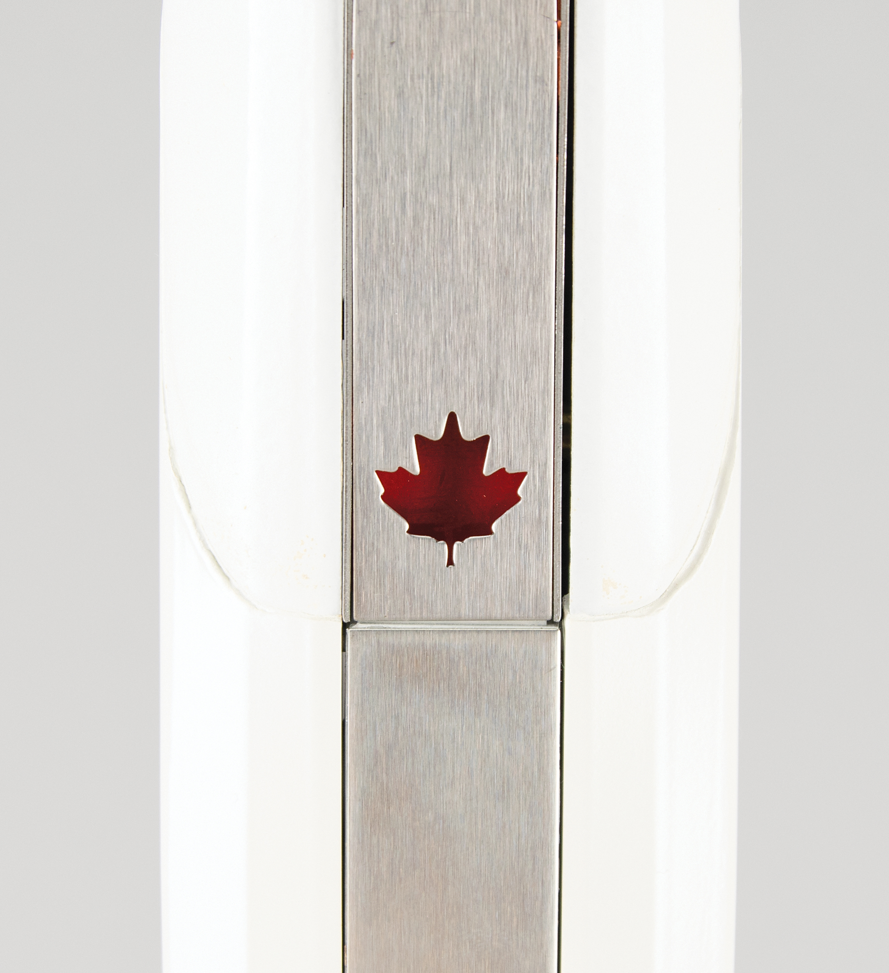 Official 2010 Vancouver Winter Olympics torch. Constructed of stainless steel, aluminum, and sheet molding, the torch measures 37″ in length and 3″ at its widest point. Manufactured by Bombardier, the torch features a shape and contours that represent the lines made by snow and ice sports, and it’s engraved with the motto "With Glowing Hearts / Des plus brilliants exploits," with the Canadian maple leaf 'cut-out' on the opposing side. The two white panels bear the Vancouver Games logo, and the body bears a trivial few scuffs and marks. Complete with its original torch relay carrying bag. The torch was lit in Olympia on October 22, 2009, and from October 30, 2009, until February 12, 2010, the Olympic Flame was carried by over 12,000 runners for over 100 days over a course of 45,000 km of Canadian soil—the longest national relay ever held. An attractive, near pristine example of the Vancouver relay torch.