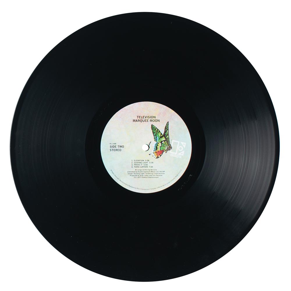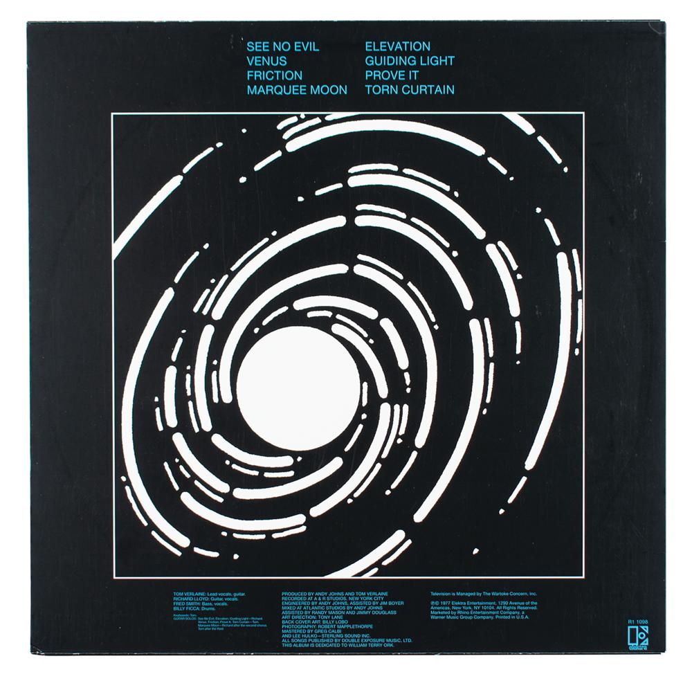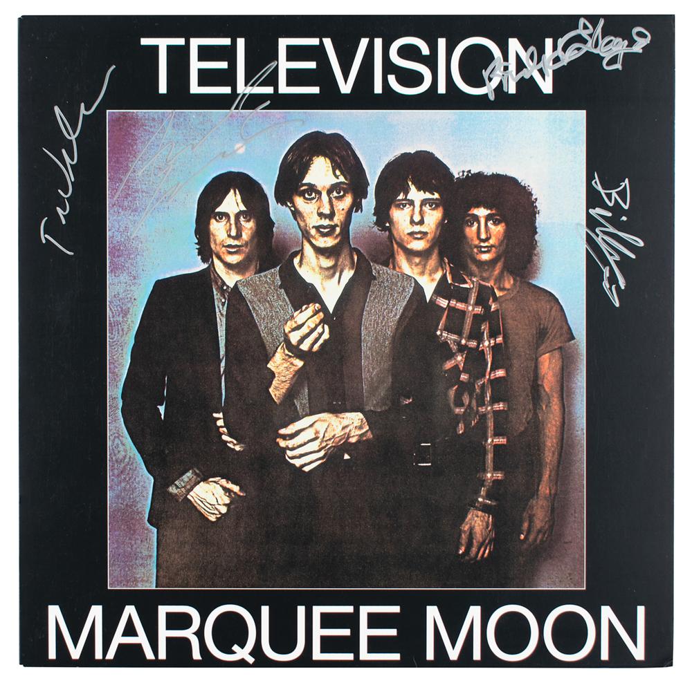Marquee Moon album signed on the front cover in silver ink by Tom Verlaine, Richard Lloyd, Fred Smith, and Billy Ficca. In very fine condition. The record is included. Accompanied by a full letter of authenticity from JSA.