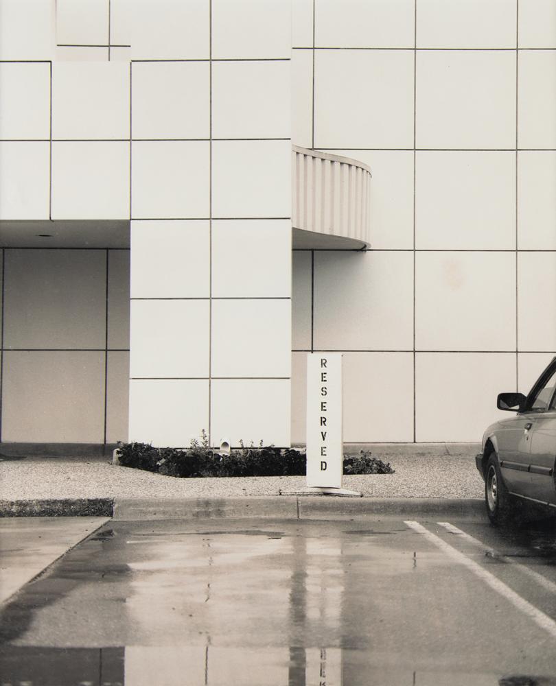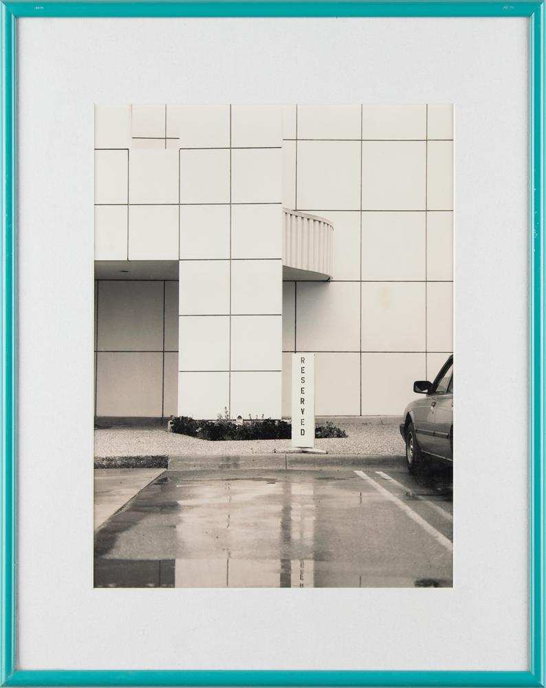 Original semi-glossy 8.25 x 10.25 silver gelatin photograph of "Prince's Parking Place," photographed by Matthew Rolston for Interview magazine. The space directly outside the entrance to Paisley Park features a sign marked "Reserved" and was known to all employees at Paisley that this was Prince's designated parking spot—if he chose to use it (he typically used the underground parking garage). Matted and framed to an overall size of 12.5 x 14.5. Includes an original copy of the February 1990 issue of Interview magazine in which this photograph appeared, on page 86 (this example of the magazine was never in Prince's hands or at Paisley Park). Rolston was granted rare access to Paisley Park to produce the four-page photo essay, which incorporates collage elements and facsimiles of Prince's handwritten lyrics. In fine condition.
