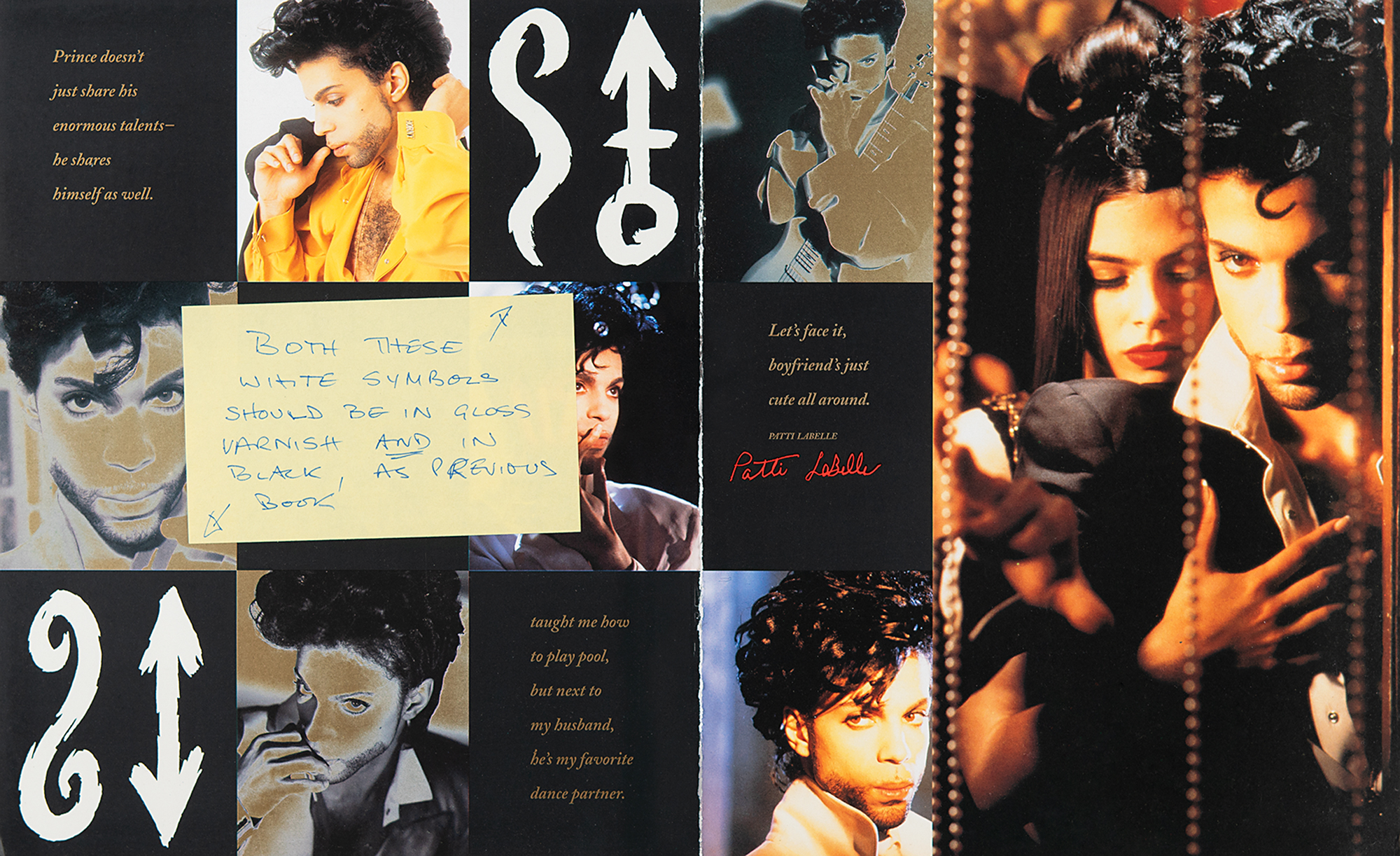 Prince's former co-manager Jill Willis recalls: "All the notes are a combination of those written after the prototype was first proofed by me in order to share details of the corrections I thought the program needed as well as those that were added after meeting with Prince to go over the book and add his changes."