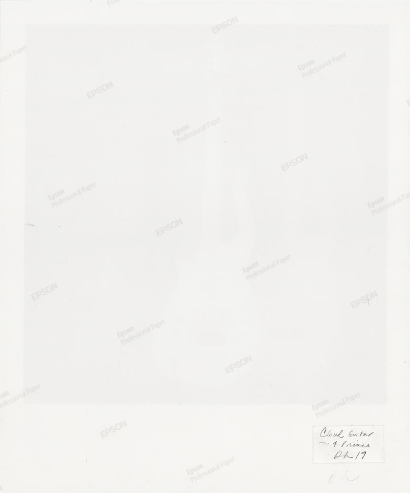 Color satin-finish 11.75 x 14 photo print on Epson Professional paper made from an original 1984 Polaroid featuring Prince's famous white Cloud guitar, created by artist Doug Henders as an homage to Prince after his passing. Titled and initialed on the reverse in pencil by Henders. In very fine condition.