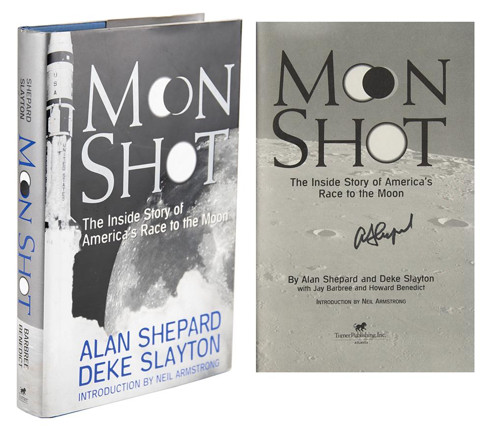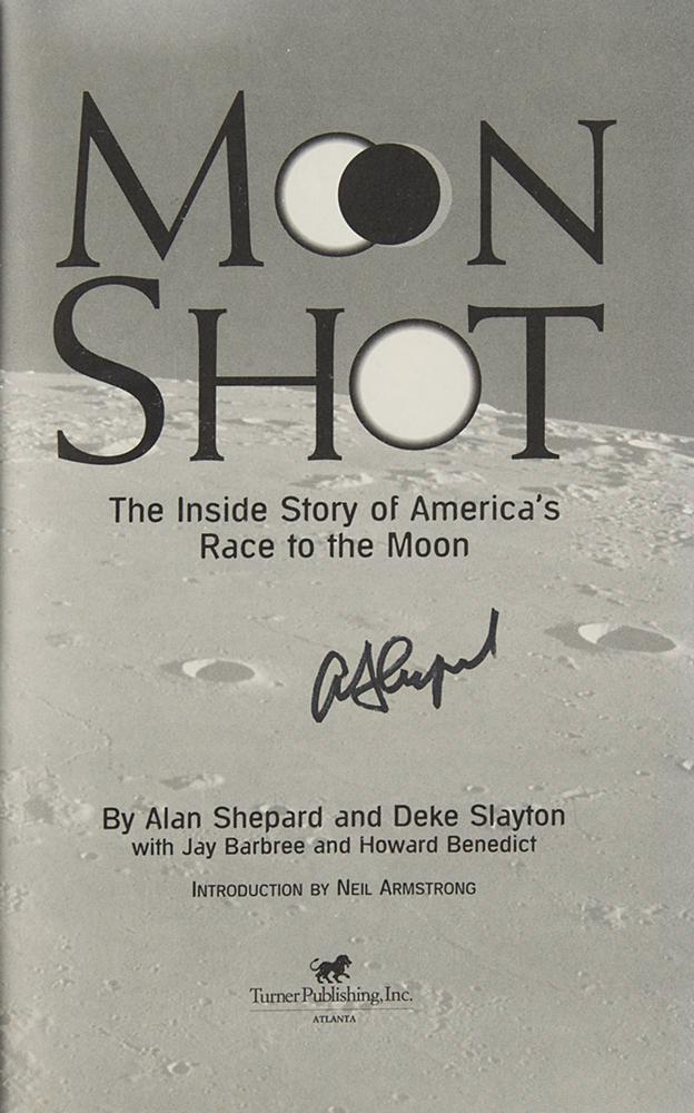 Signed book: Moon Shot: The Inside Story of America's Race to the Moon. Later printing. Atlanta, GA: Turner Publishing, 1994. Hardcover with dust jacket, 6.5 x 9.25, 383 pages. Signed on the title page in black felt tip, "Al Shepard." In fine condition.