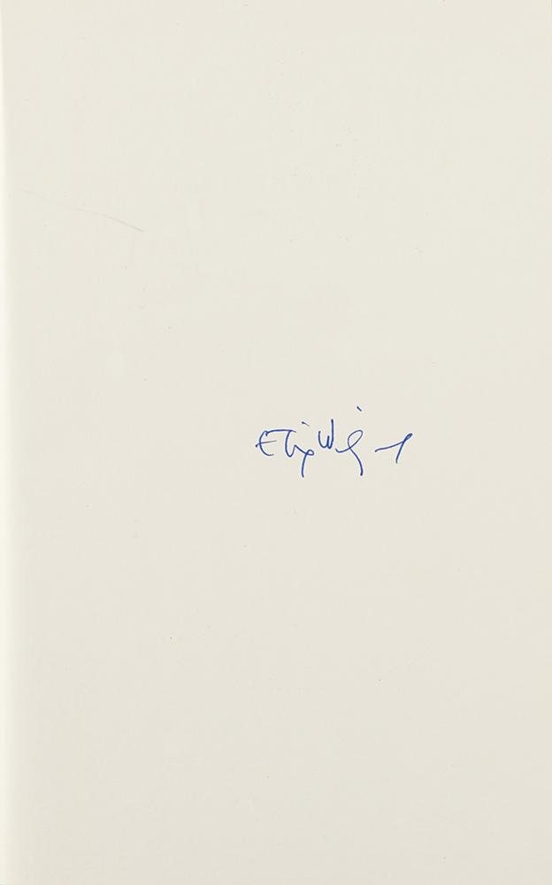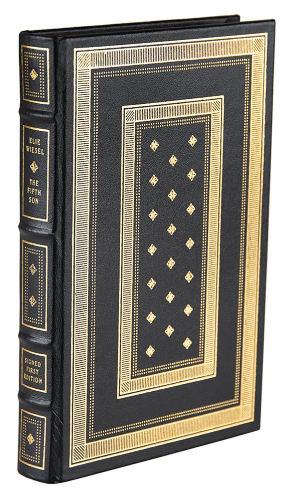 Signed book: The Fifth Son. First edition. Franklin Center, PA: Franklin Library, 1985. Leatherbound hardcover, 6 x 9, 210 pages. Signed on a free end page in blue felt tip by Elie Wiesel. In very fine condition.