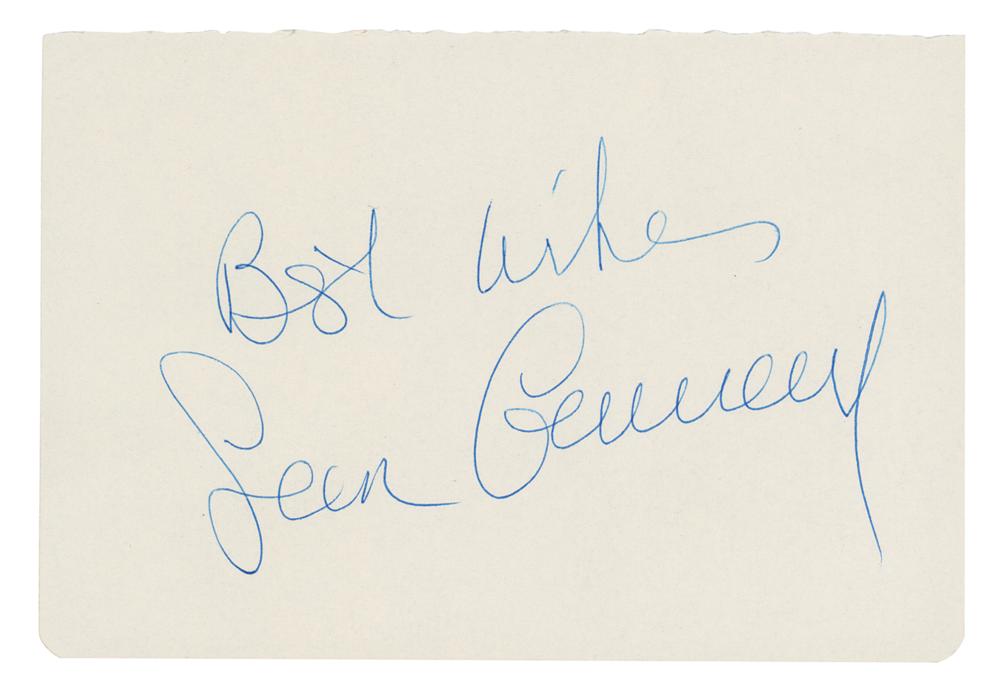 Neat blue ink signature, "Best wishes, Sean Connery,” on an off-white 6.5 x 4.5 album page. In very fine condition.