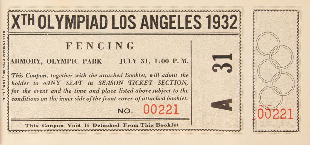 - 11 season ticket booklets for the fencing events held at the State Armory from July 31-August 13, each containing 20 tickets