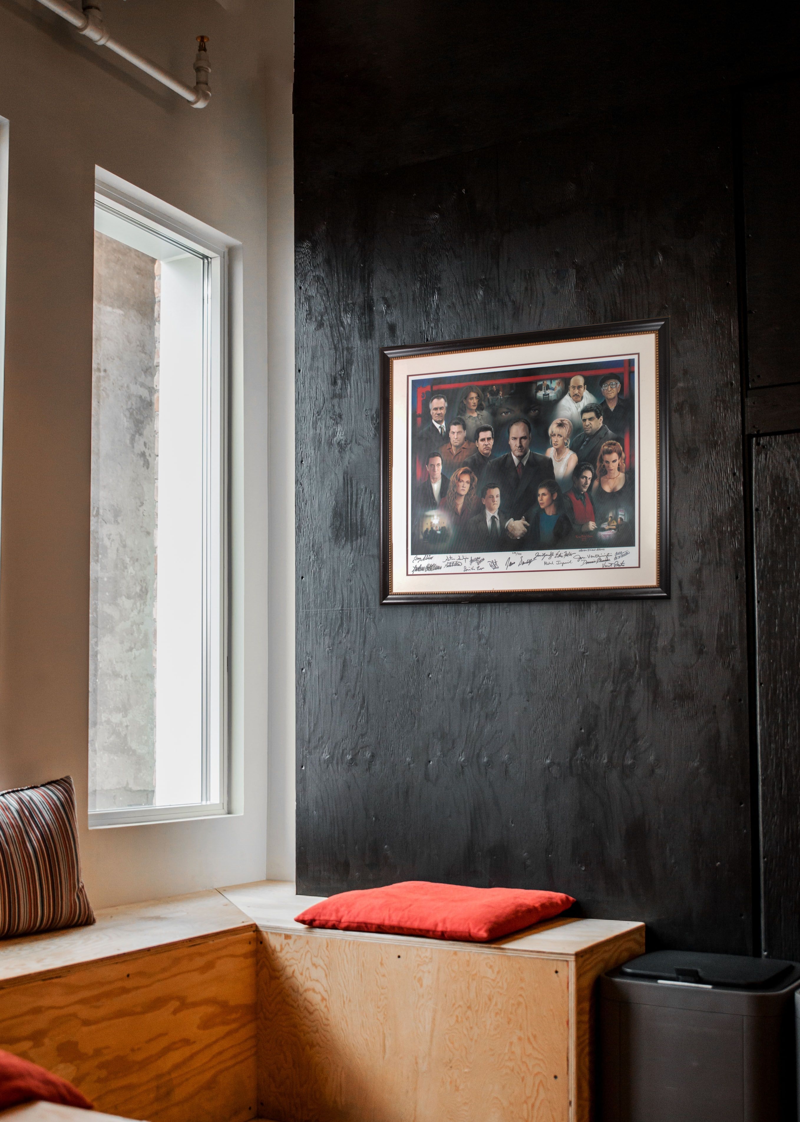 Limited edition color 36 x 31 canvas print featuring artistic depictions of the cast from The Sopranos, numbered 299/500, signed in the lower border in black felt tip by all 15 pictured cast members: James Gandolfini, Tony Sirico, Steve Van Zandt, Robert Iler, Vincent Pastore, Michael Imperioli, Dominic Chianese, Lorraine Bracco, Edie Falco, John Ventimiglia, Drea DeMatteo, Jamie-Lynn Sigler, Federico Castelluccio, Aida Turturro, and Steve Schirripa. Also signed in black felt tip by the artist, Karen O'Neil Ganci. Beautifully double-matted and framed to an overall size of 47 x 40. In fine condition. This print was the only officially commissioned signing done by the cast of the show.