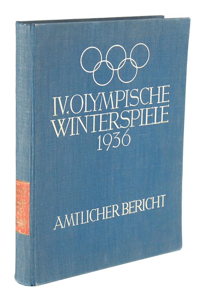 Official report in German: IV. Olympische Winterspiele 1936: Amtlicher Bericht [4th Olympic Winter Games 1936: Official Report]. Berlin: Reichssportverlag, 1936. Hardcover bound in blue cloth with gilt-stamped titles, 9.5 x 12.25, 449 pages. Book condition: VG+/None.