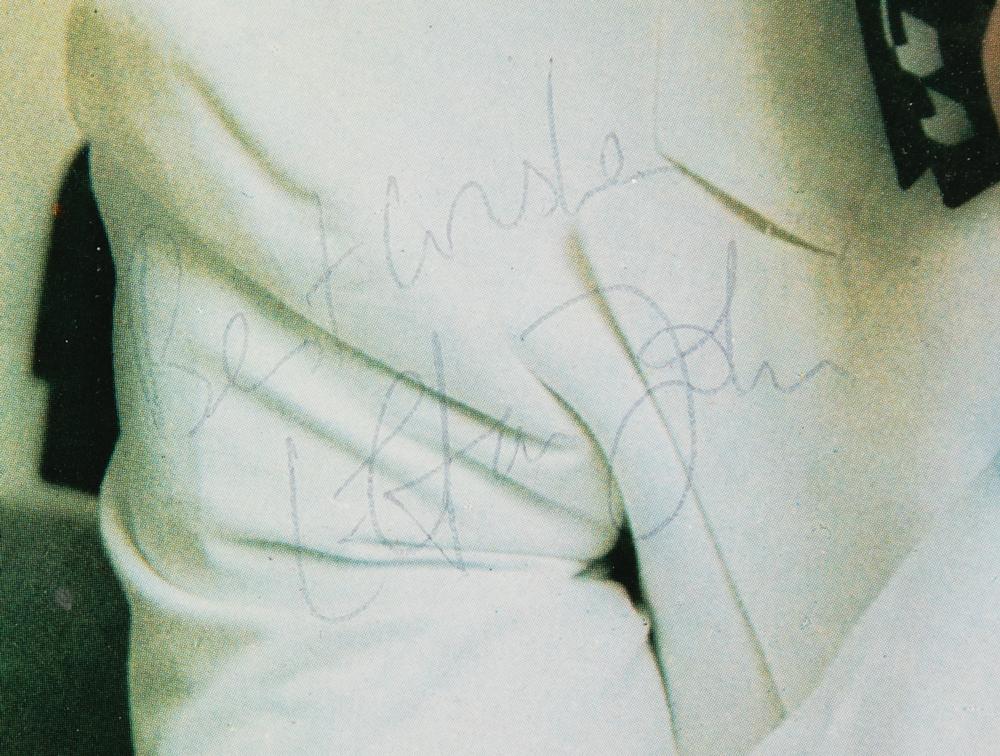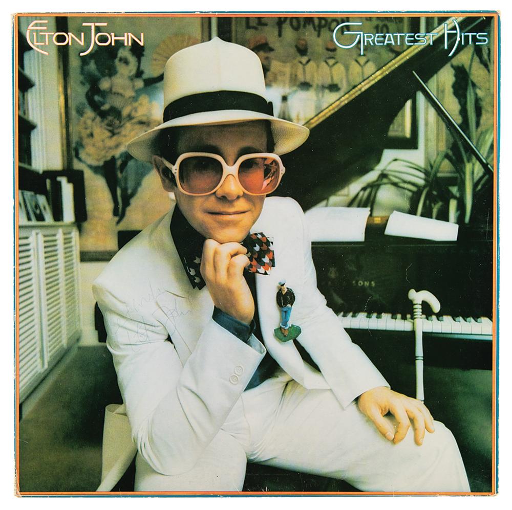 Greatest Hits album signed on the front cover in ballpoint, "Best wishes, Elton John." In fine condition, with the handwriting quite light but fully legible. The record is not included.