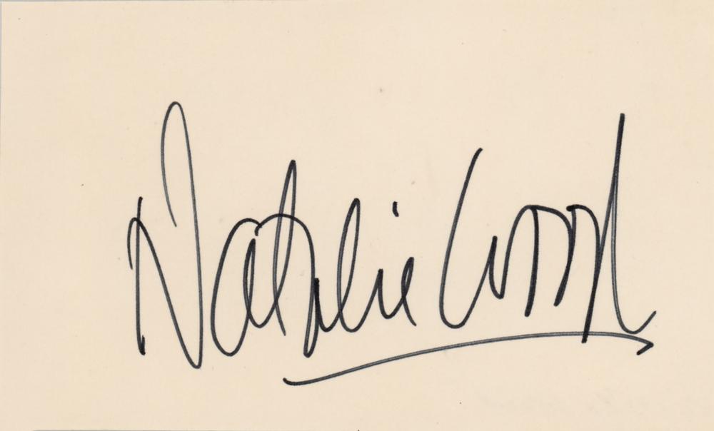 Felt tip signature, "Natalie Wood," on an off-white 5 x 3 card. In very fine condition.