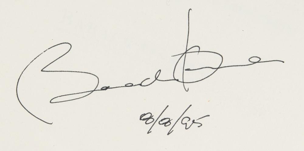Signed book: Dreams from My Father: A Story of Race and Inheritance. First edition. NY: Random House, 1995. Hardcover with dust jacket, 6.5 x 9.5, 403 pages. Signed on the half-title page in black ink, “Barack Obama, 8/8/95.” In fine condition, with some wear and toning to the dust jacket. A very desirable first edition of Barack Obama's critically acclaimed memoirs, featuring the pioneering president's bold autograph. Stemming from one of Obama’s first book signings, this sensationally early printing was signed a mere three weeks after its publication.