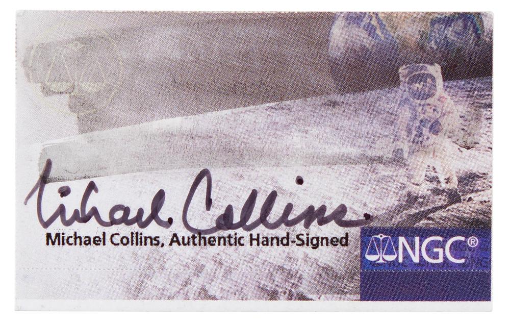 Felt tip signature by the celebrated Apollo 11 Command Module Pilot, "Michael Collins,” on a 1.75 x 1 NGC coin grading label. In very fine condition.