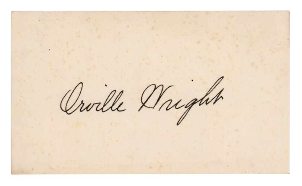 Neat ink signature, "Orville Wright,” on an off-white 3.75 x 2.25 card. In very fine condition.