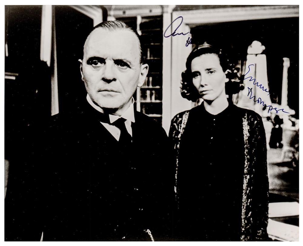 Glossy 10 x 8 photo of Anthony Hopkins and Emma Thompson from the Oscar-nominated 1993 film The Remains of the Day, signed by both in black felt tip. In very fine condition.