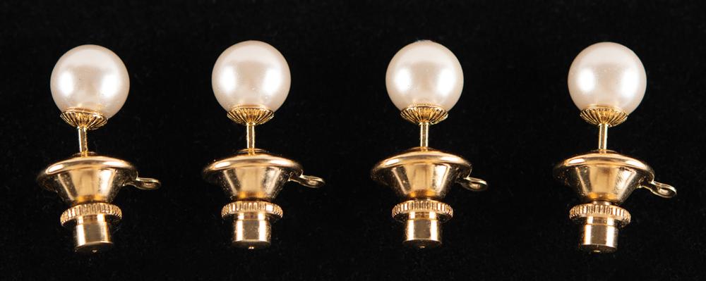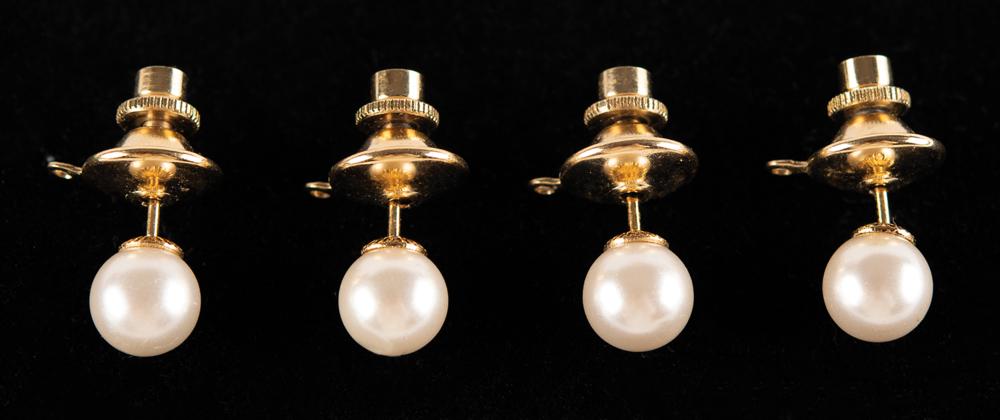 Two pairs of Prince's personally-owned, stage-worn costume pearl earrings from the later half of the iconic 1984-85 Purple Rain Tour, featuring large faux pearls set on golden pins, with gold-tone clutch backings. In fine condition, with minimal scuffing to one of the pearls.