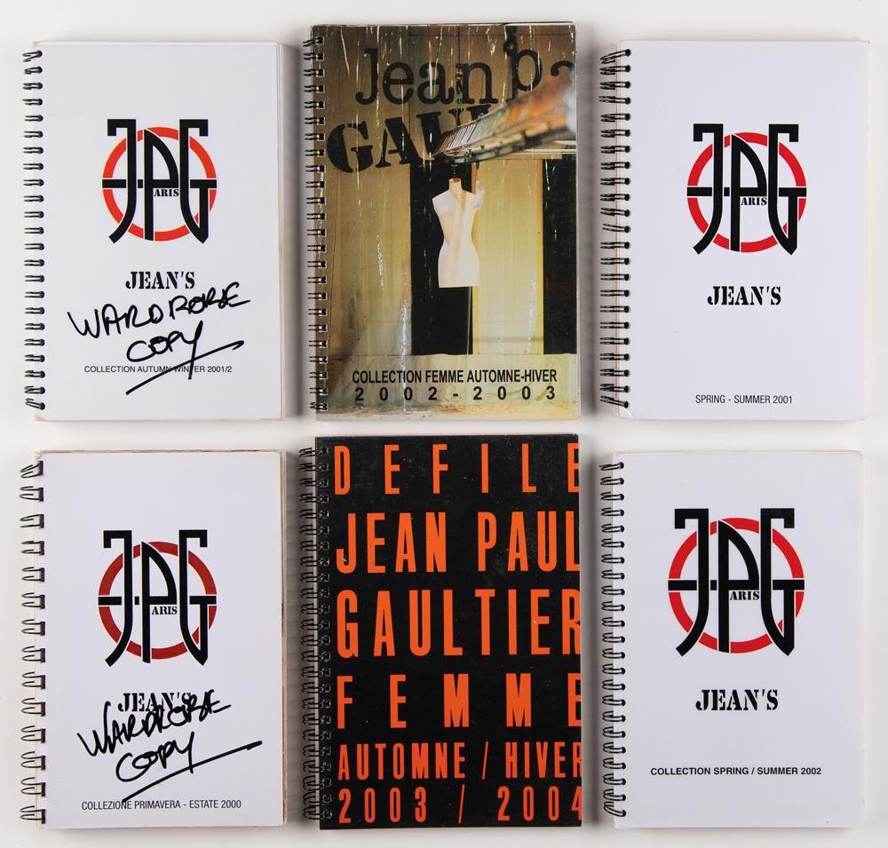 Originating from the Paisley Park wardrobe department: a set of six spiral-bound fashion catalogs of collections by French fashion designer Jean Paul Gaultier, which were personally requested by Prince to be kept in the department as inspirational reference books. The books, each approximately 6 x 8, are for the following collections: Spring 2000, Spring/Summer 2001, Autumn/Winter 2001-2002, Spring/Summer 2002, Autumn/Winter 2002-2003, and Autumn/Winter 2003-2004. Two of the catalogs are marked in felt tip on the front cover: “Wardrobe Copy.” In overall fine condition. A fascinating lot of PRN reference books that wed the ingenious and unconventional fashion styles of Prince and Jean Paul Gaultier.