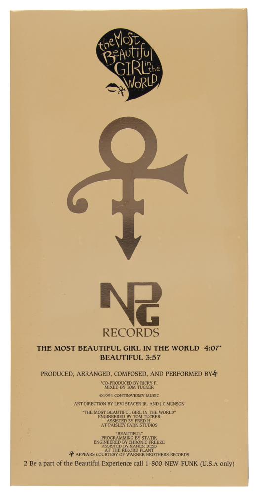 Very rare factory-sealed 'flat' long box "4U" gift pack containing the CD single of 'The Most Beautiful Girl in the World' and 'Beautiful.' Inside the jacket are the lyrics and a blank space for a written 'dedication' by the buyer to his or her 'significant other.' In very fine condition. This 'flat' version is a very rare example of this "4U" gift pack, with the other more commonly seen version much 'thicker' in contrast.