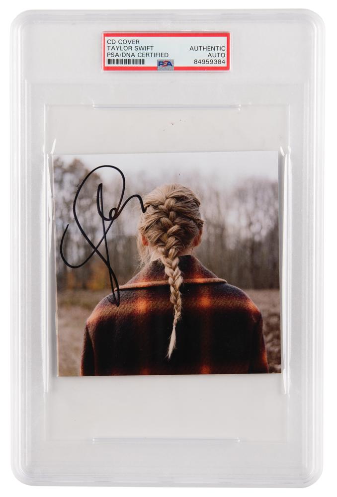 CD booklet for Taylor Swift’s ninth studio album Evermore, signed on the front cover in black felt tip. In very fine condition. The CD is not included. Encapsulated in a PSA/DNA authentication holder.