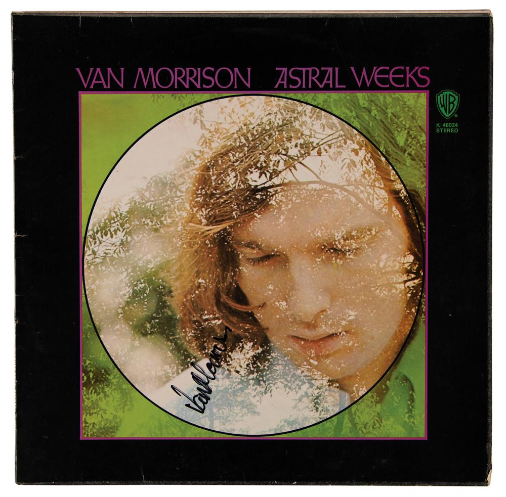Astral Weeks album by Van Morrison, who has signed the front cover in black felt tip. In fine condition. The record is not included.
