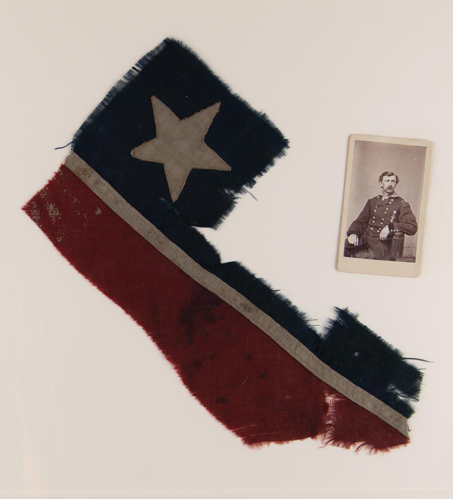 Only known fragment of the Confederate battle flag of the 2nd South Carolina Infantry Regiment, captured at Cedar Creek