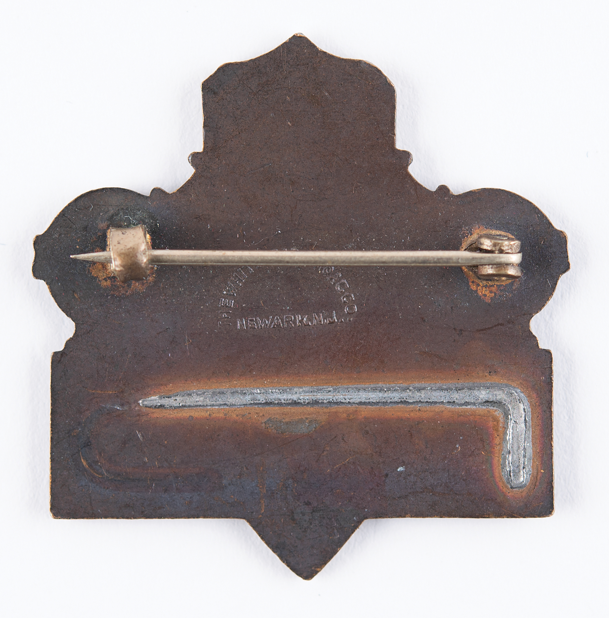 Competitor’s badge issued for the 1932 Los Angeles Olympic Games. Bronze, 38 mm x 40 mm, 13 gm, manufactured by Whitehead & Hoag of Newark. The medal features the Olympic rings over a shield and laurel branch, and is engraved “Xth Olympiad Los Angeles,” with number below, “273.” The badge’s ribbon is not present. Badges with bronze medallions were issued to team managers, athletes, attendants, and to the press. Each athlete badge was serially numbered and bore a short piece of colored ribbon, which indicated the sport in which the athlete was a competitor. These badges were good for admission to the athlete sections in the Olympic Stadium, the Olympic Village, and to the training quarters at the apropos stadium.
