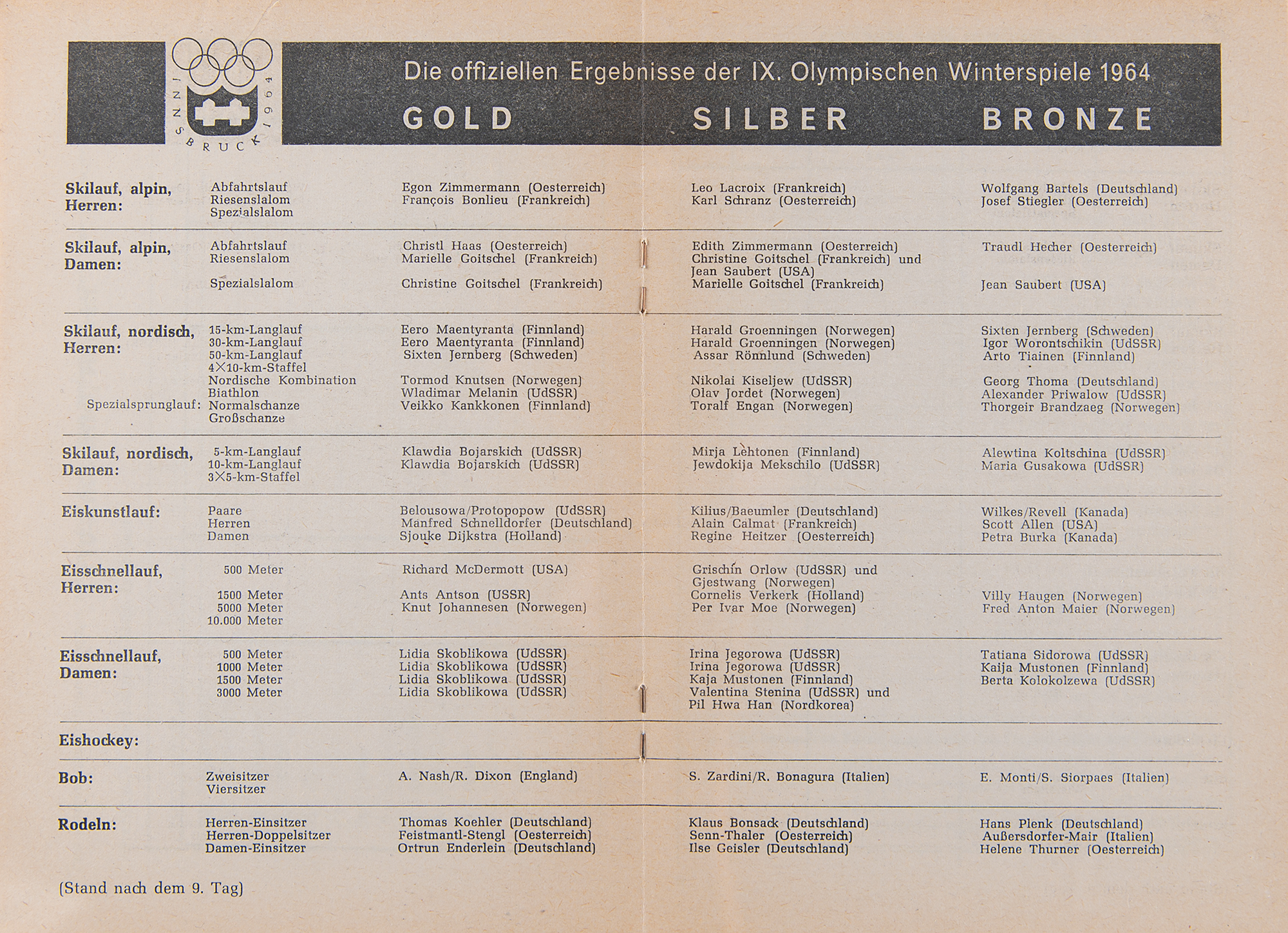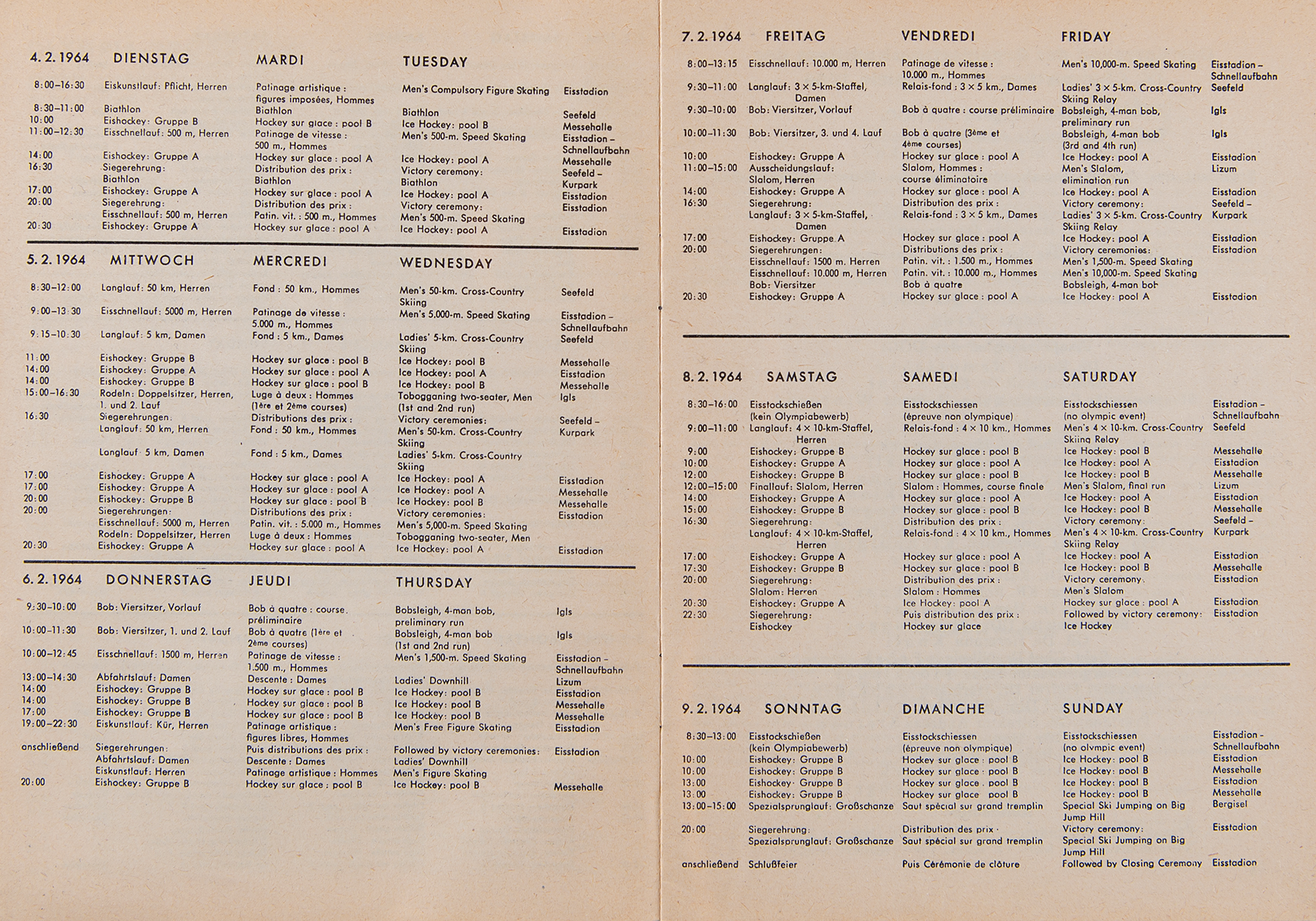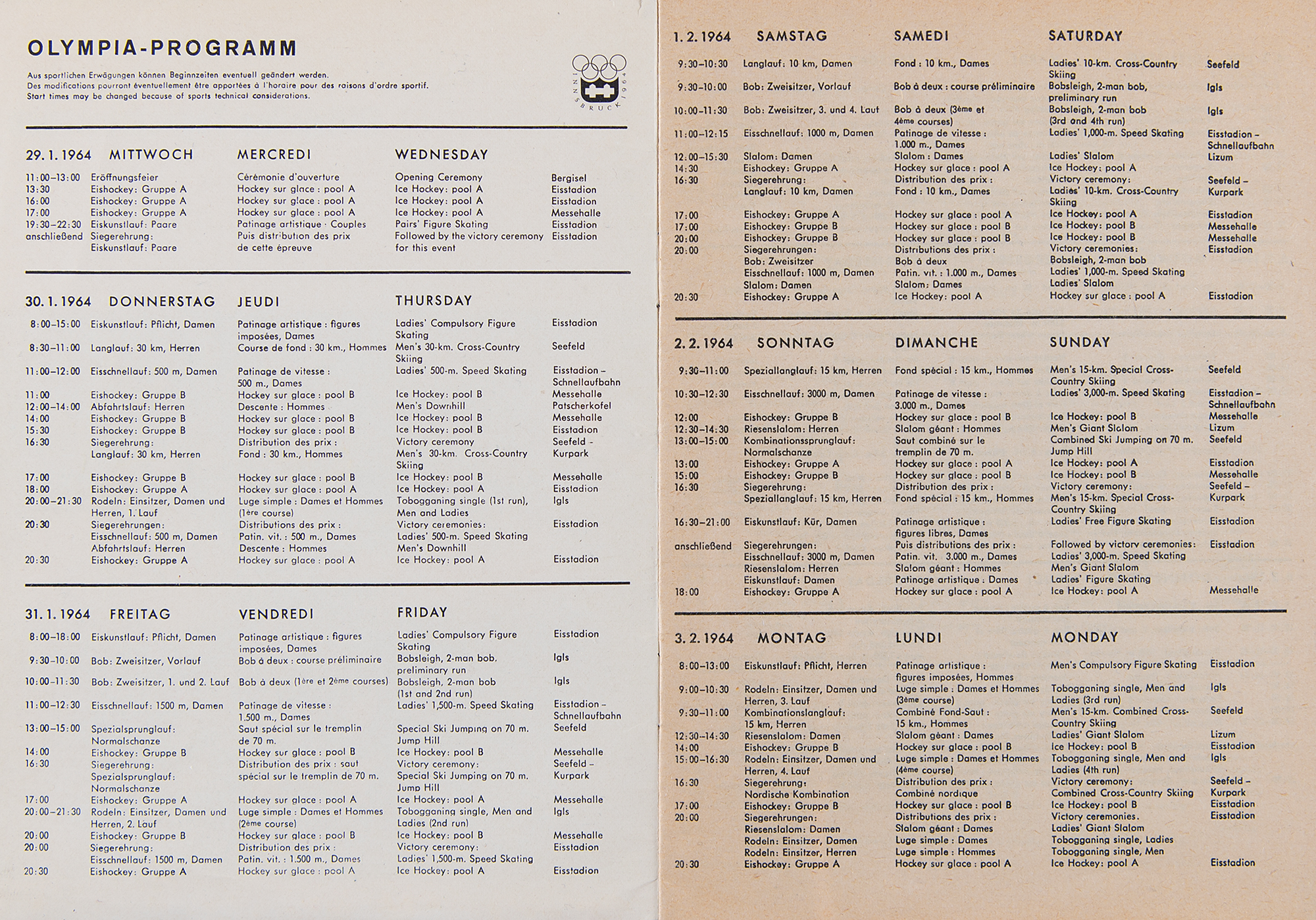 Innsbruck 1964 Winter Olympics (11) Daily Programs