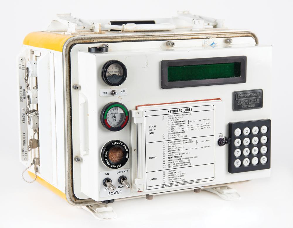 The Magnavox Geoceiver is a satellite receiver that was used for surveying. The Geoceiver was interesting because it was one of the first receivers to use signals from the Transit satellites, which were placed into orbit initially for the US Navy, and were called NAVSAT or NNSS for ‘Navy Navigation Satellite System.’ The Navy wanted a satellite system so they could get precise position fixes for submarines (Polaris), which could be obtained by rising to periscope depth and using a sextant built into the periscope to get a celestial fix.