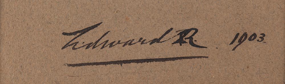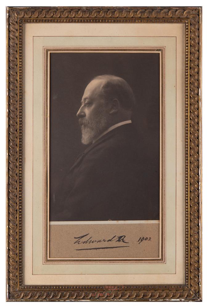 Bold ink signature, "Edward R., 1903,” on an off-white 6.25 x 2 sheet, which is matted and framed with a handsome matte-finish portrait to an overall size of 11.25 x 17. In fine condition.