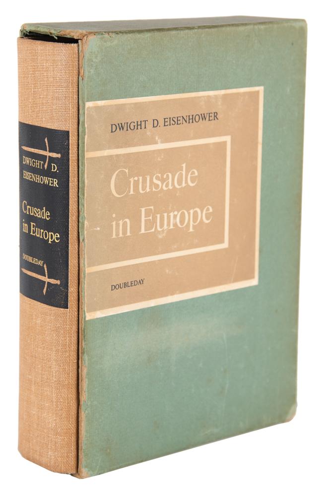 Signed book: Crusade in Europe. First edition, limited issue, numbered 207/1426. NY: Doubleday, 1948. Hardcover with publisher's slipcase, 7 x 10, 559 pages. Signed in fountain pen on a special prefatory page reproducing Eisenhower’s ‘Order of the Day’ on D-Day, “Dwight D. Eisenhower.” Autographic condition: fine. Book condition: VG in a VG- slipcase, with a bookplate affixed to the half-title page, and edgewear, scuffing, and light staining to the slipcase.