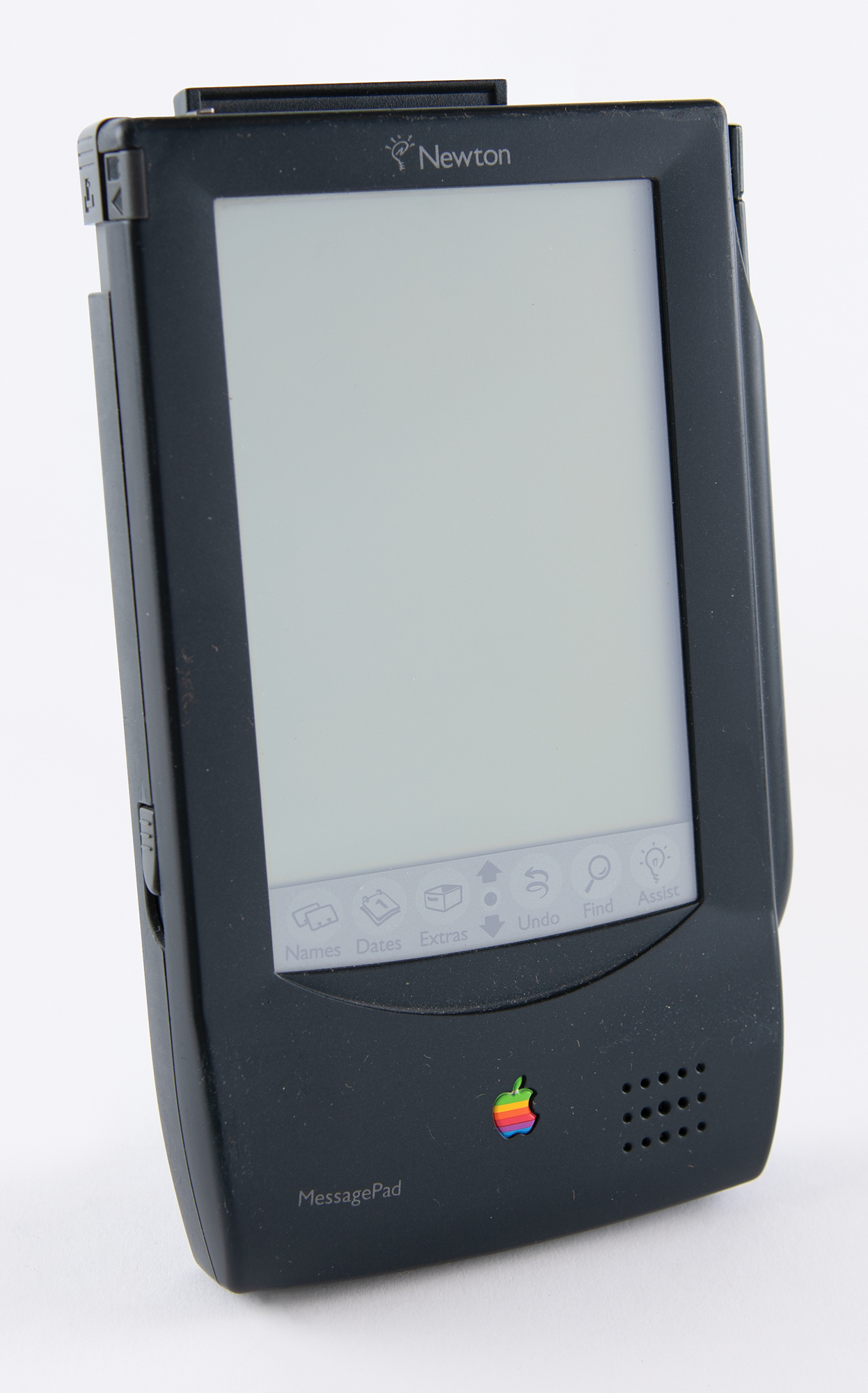 The Newton MessagePad 100 is effectively identical to the original Newton MessagePad, but was less expensive, and shipped with a newer version of the NewtonOS (1.2) in ROM. The Newton MessagePad was one of the first series of handheld systems, or PDAs (Personal Digital Assistants), to attempt to recognize natural handwriting and use a basic form of artificial intelligence to 'tie' relevant information together.