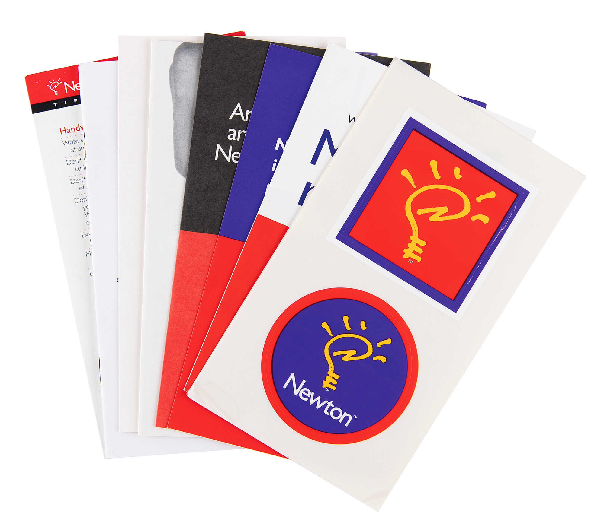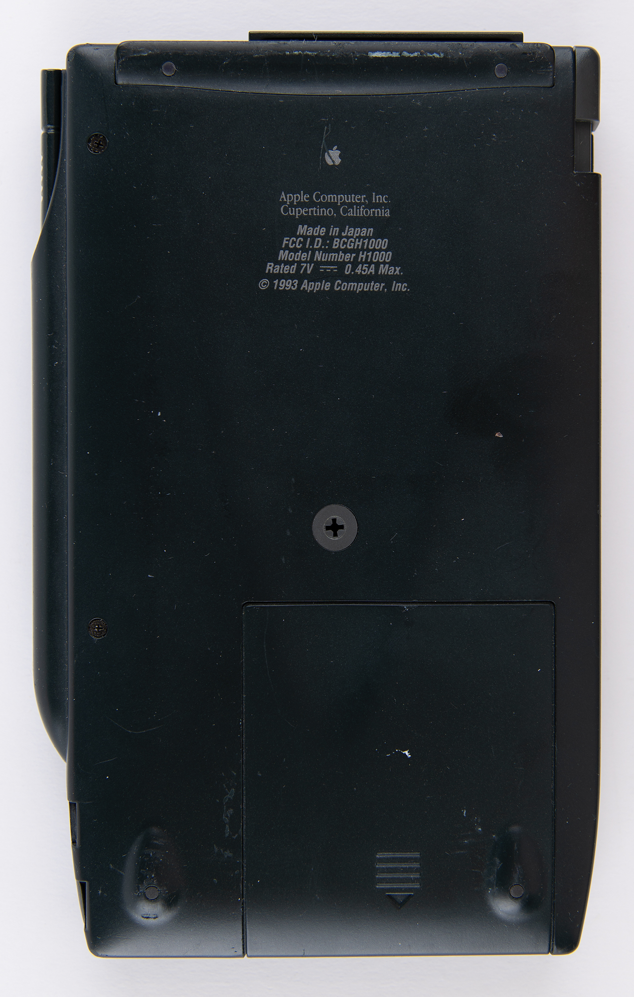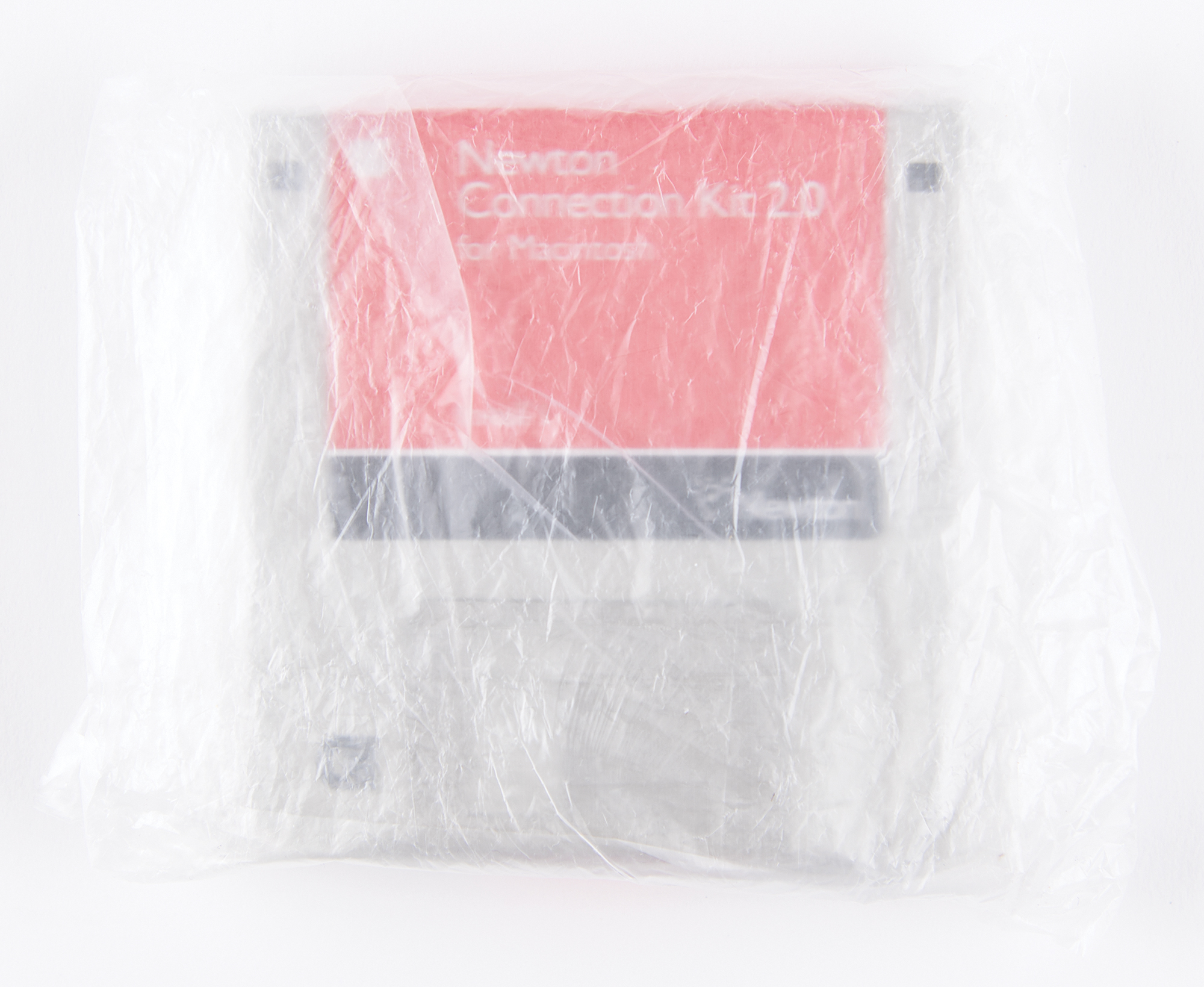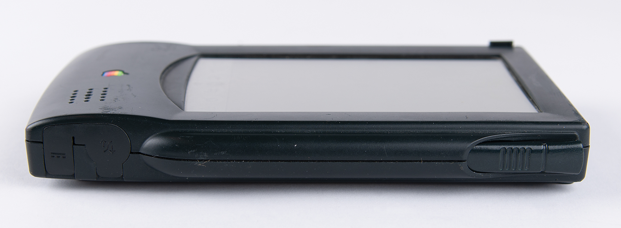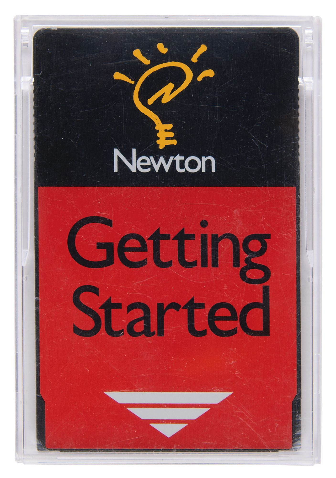 Newton MessagePad 100 personal digital assistant released by Apple Computer in 1993, which features a 20 MHz ARM 610 processor, 4 MB of ROM, 640k of RAM (150k usable), and infrared-beaming capabilities in a compact handheld case with a 336x240 pressure-sensitive monochrome display for use with a provided stylus. Includes Newton Connection Kit 2.0 discs for Macintosh (3) and Windows (3), a “Getting Started” cartridge, Apple PIE Developer Information Group CD #3, a Newton MessagePad handbook, and a Newton Information sleeve with associated literature and Apple and Newton decals. In fine condition.