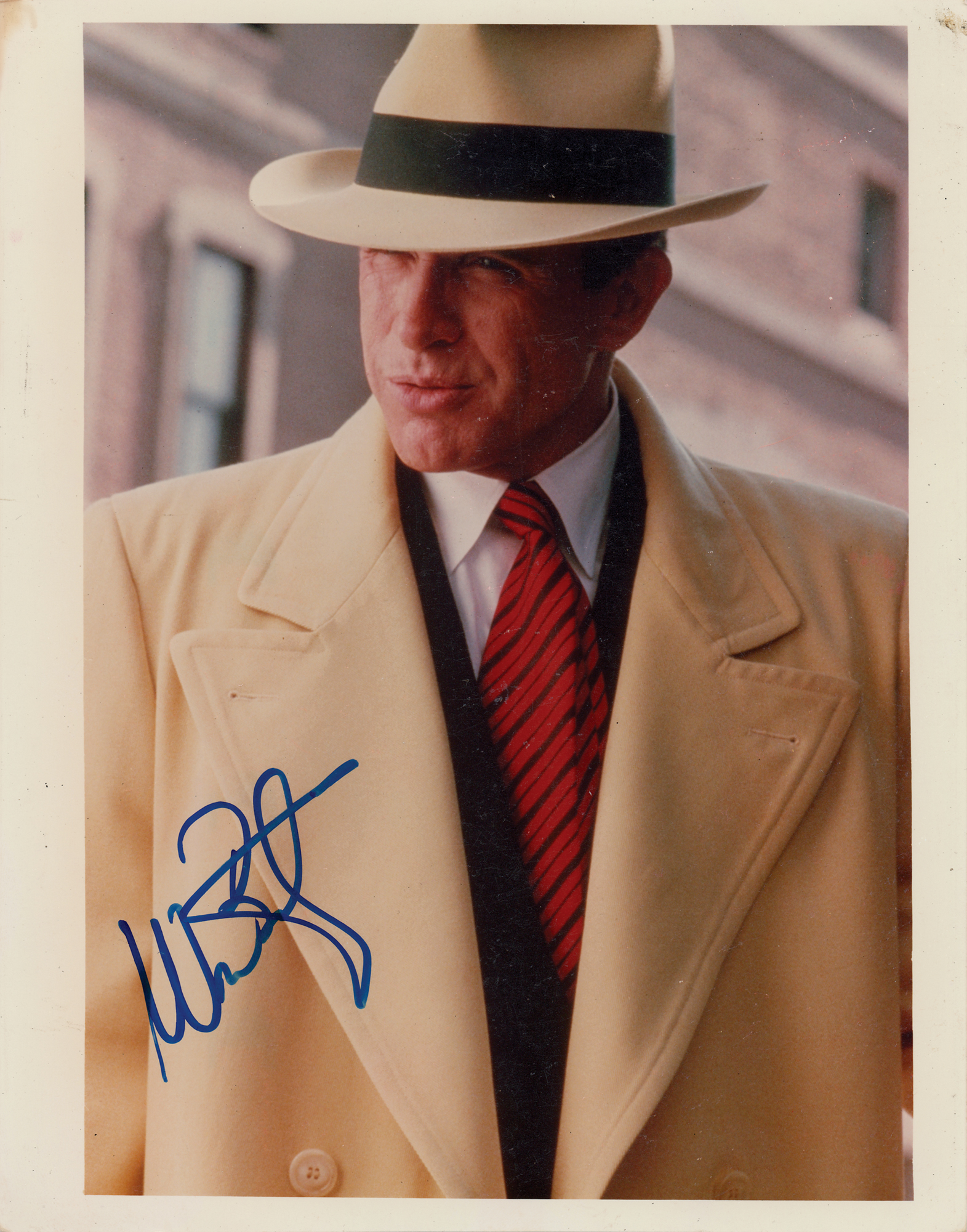 Color satin-finish 8 x 10 photo of Warren Beatty as the title film character Dick Tracy, signed in blue felt tip. In fine condition. Originally obtained by in-person specialist Mike Wehrmann.