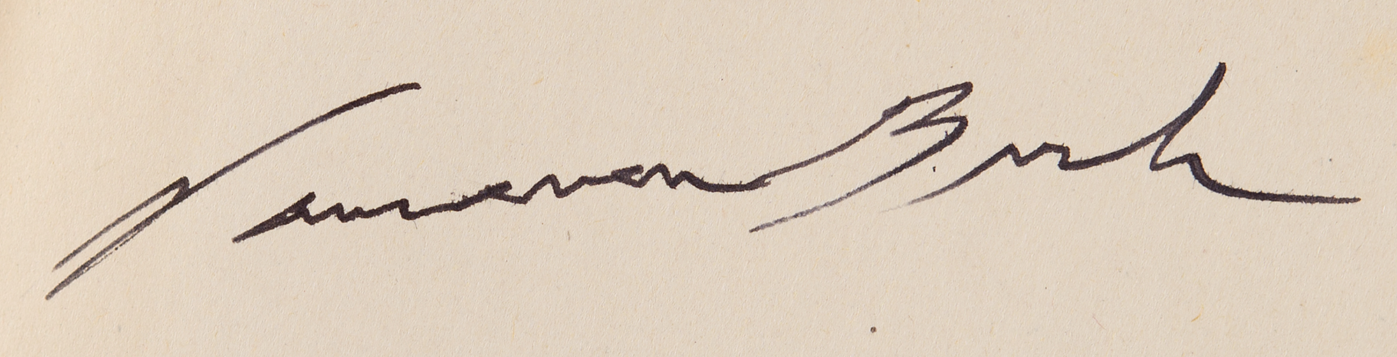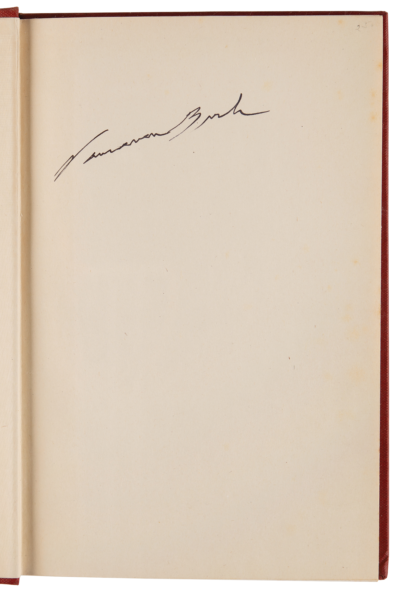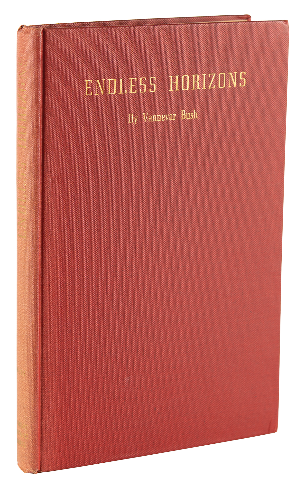 Engineer (1890–1974) known for his pivotal role in the development of the atomic bomb as a primary organizer of the Manhattan Project. Signed book: Endless Horizons by Vannevar Bush. First edition. Washington, DC: Public Affairs Press, 1946. Hardcover, 6.25 x 9.25, 182 pages. Signed on the first free end page in black ink, "Vannevar Bush." In fine condition, with sunning to the spine.