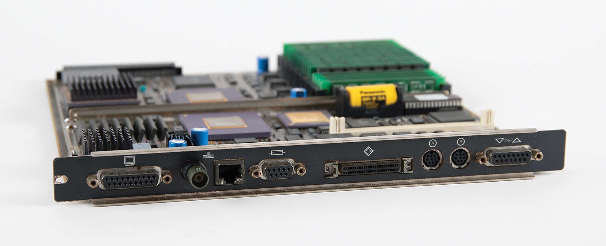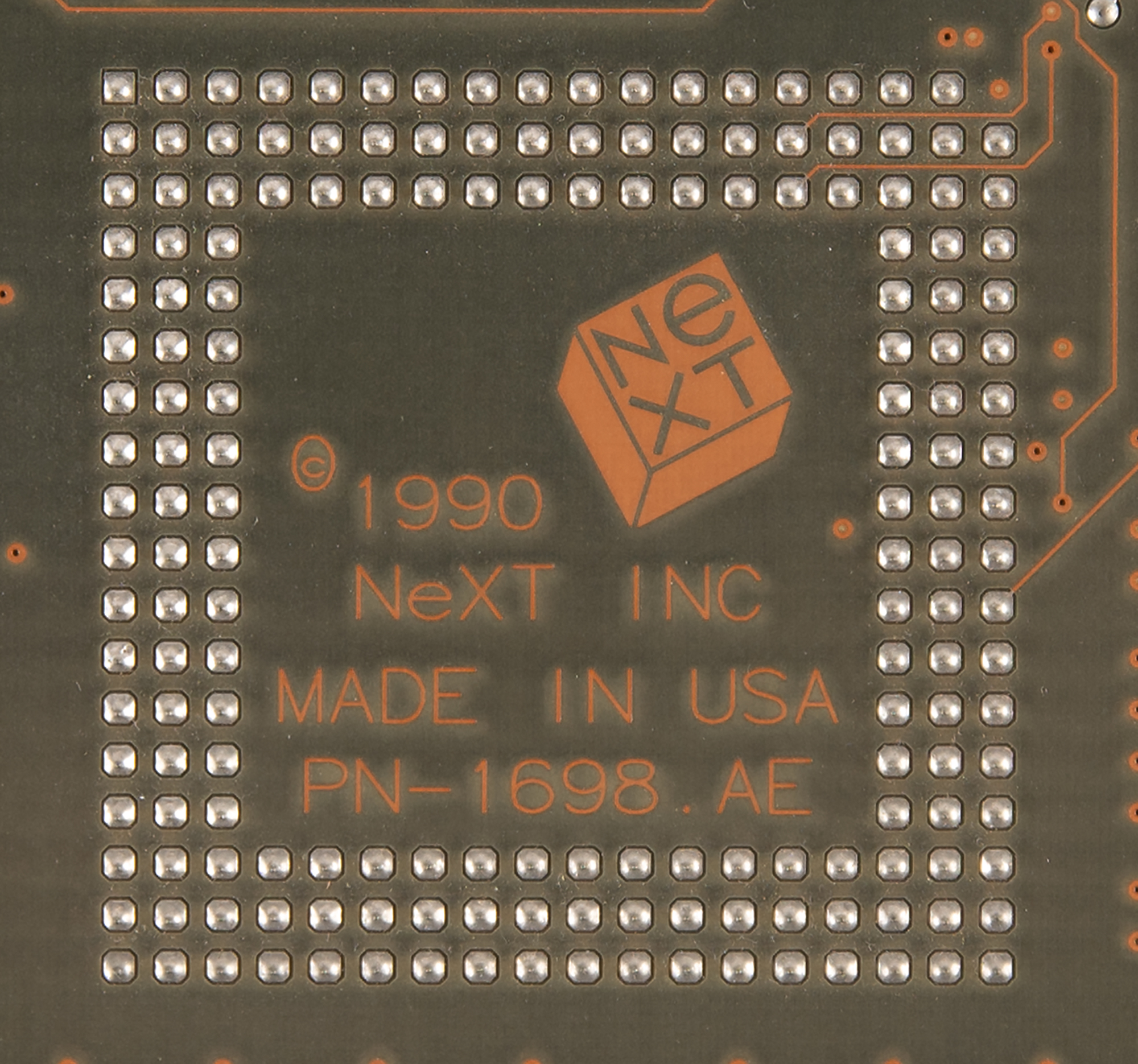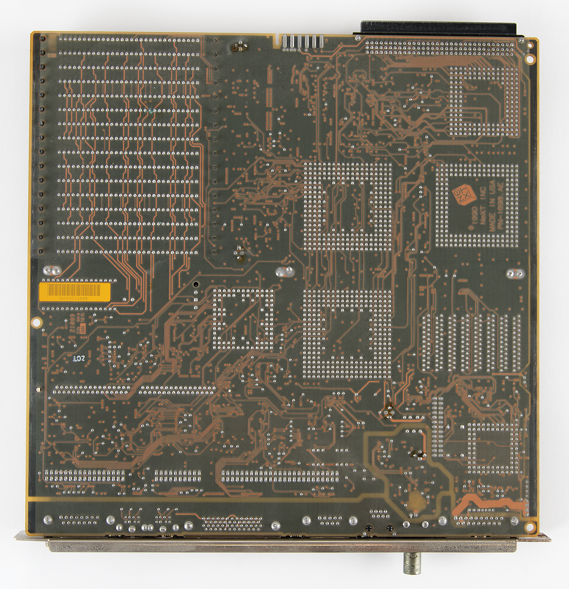 NeXTcube logic board with Motorola 68040 processor (recapped and working), 11″ x 11.25″, with the reverse featuring the classic NeXT logo designed by Paul Rand, with a copyright date of 1990, reading: "NeXT Inc., Made in USA, PN-1698.AE." In fine condition.