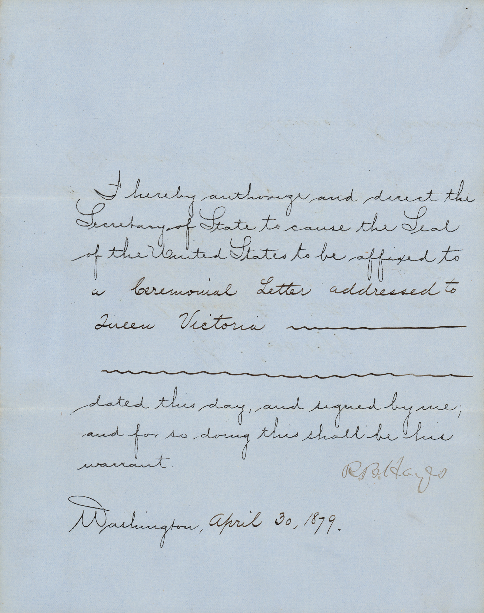 President Rutherford B. Hayes Sends a Ceremonial Letter to Queen Victoria