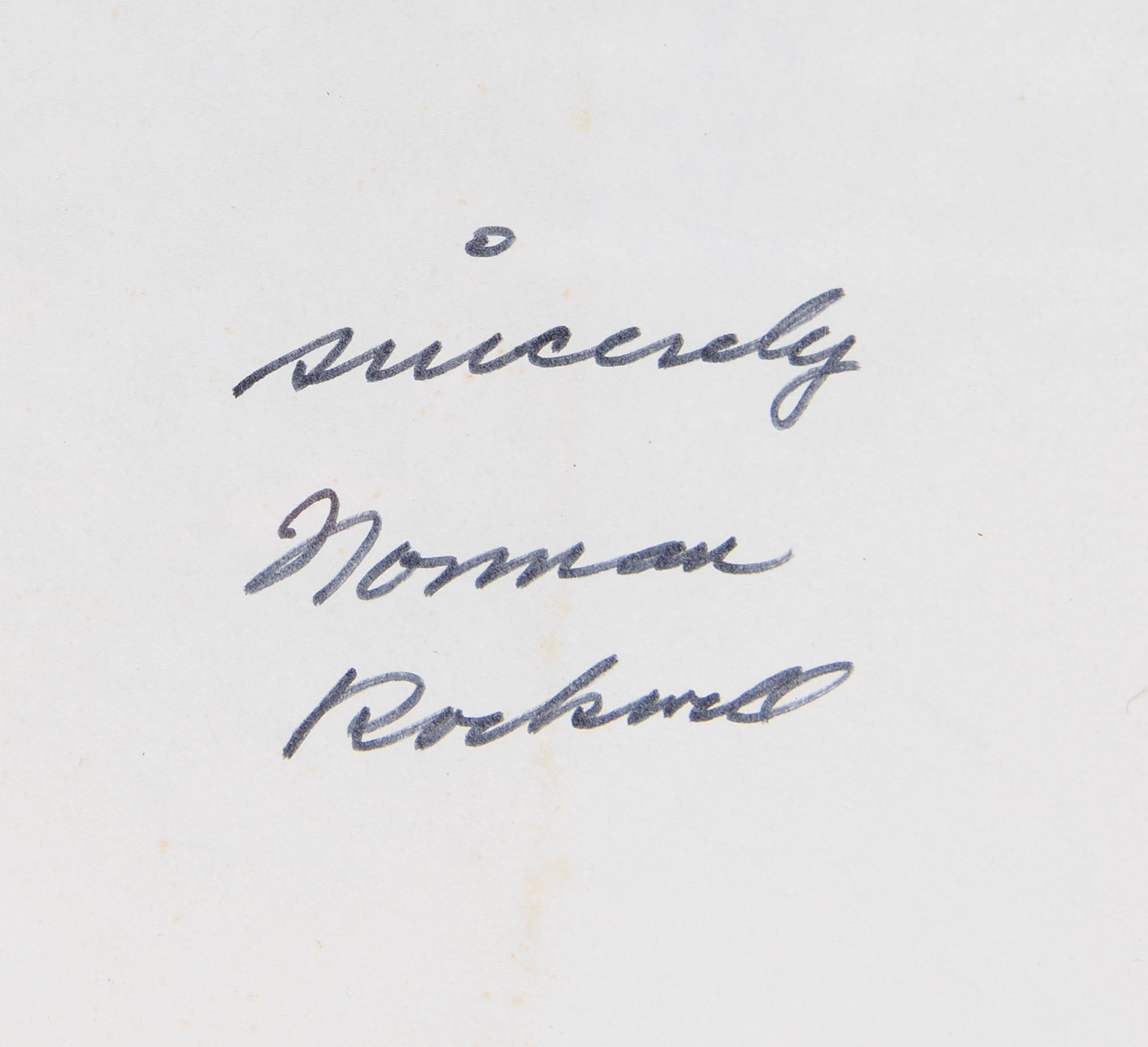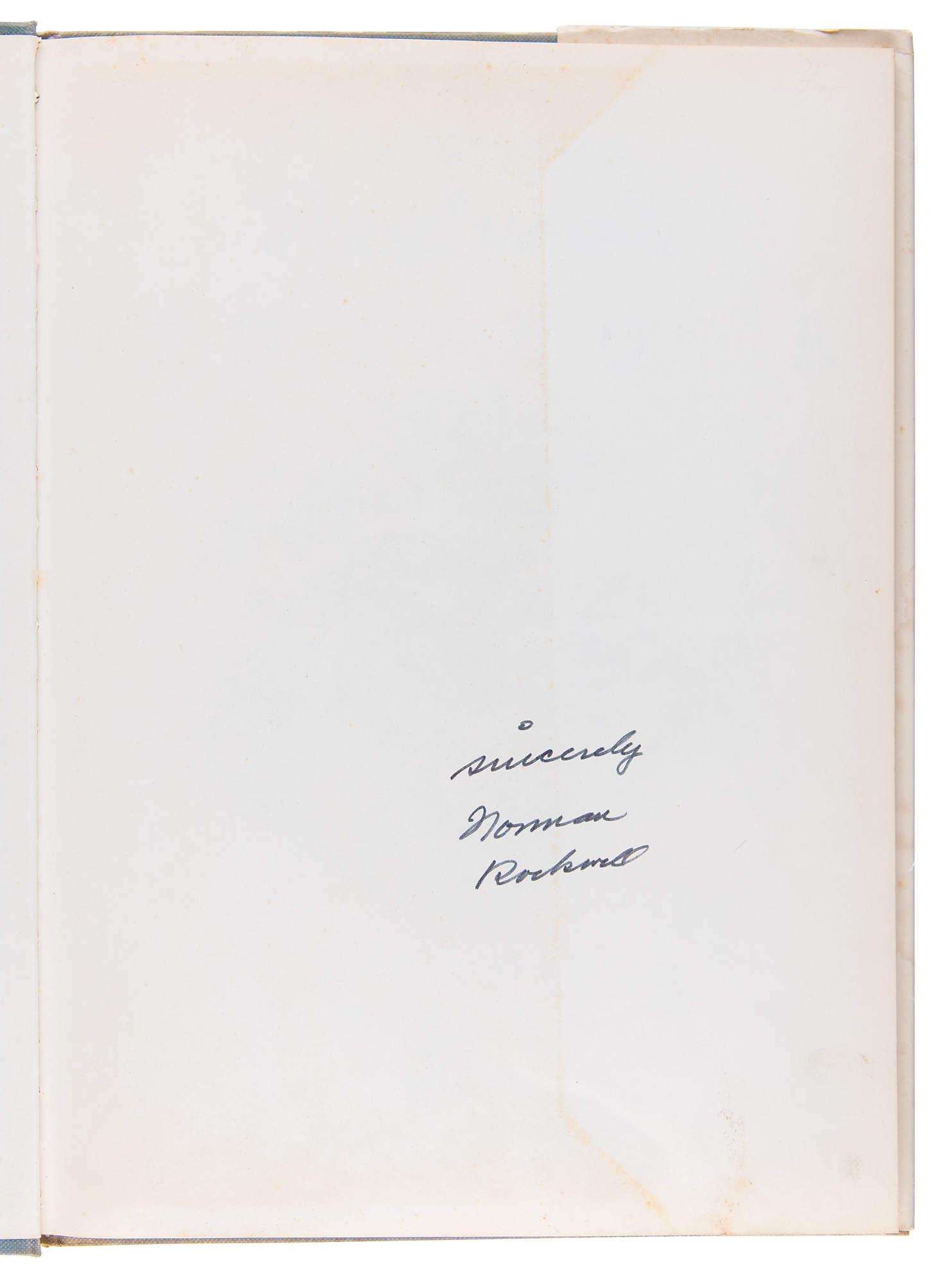 Signed book: The Norman Rockwell Storybook. NY: Windmill Books, 1969. Hardcover with dust jacket, 9.25 x 12.25. Signed on the first free end page in black felt tip, "Sincerely, Norman Rockwell." In fine condition, with wear to the price-clipped dust jacket, and some dampstaining to the left half of the signed page.