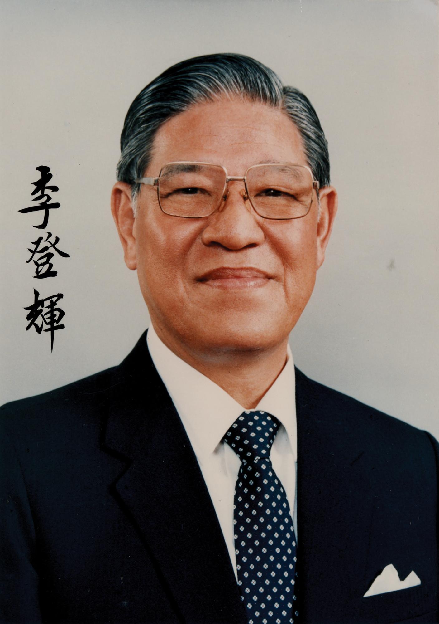 Politician (1923-2020) sometimes called the 'father of Taiwan's democracy' who served as president of the Republic of China from 1988 to 2000. Color satin-finish 5 x 7 head-and-shoulders portrait of Lee Teng-hui, signed in black ink in Chinese. In very good to fine condition, with two light diagonal bends.