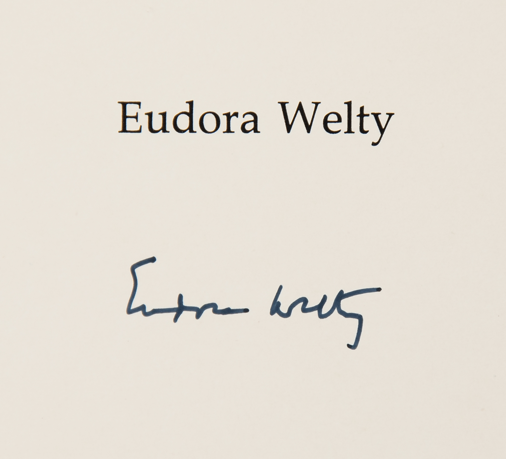 Collection of 20 half-title pages intended for a limited first edition published by Lord John Press, each 8.5 x 9, each signed in black ballpoint by Eudora Welty. In overall very fine condition. Originates from the archives of Lord John Press.