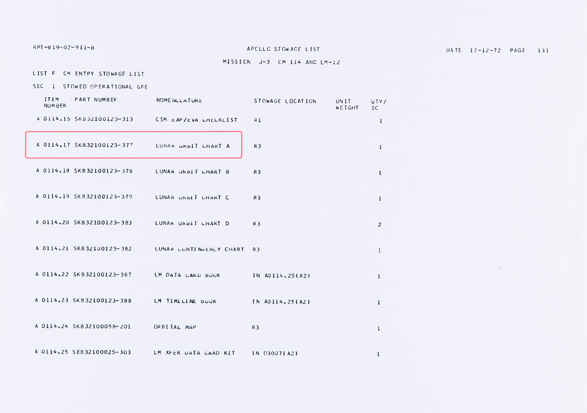 To the moon and back—a flown plate from CDR Cernan's Apollo 17 'Lunar Orbit Chart A' photography map