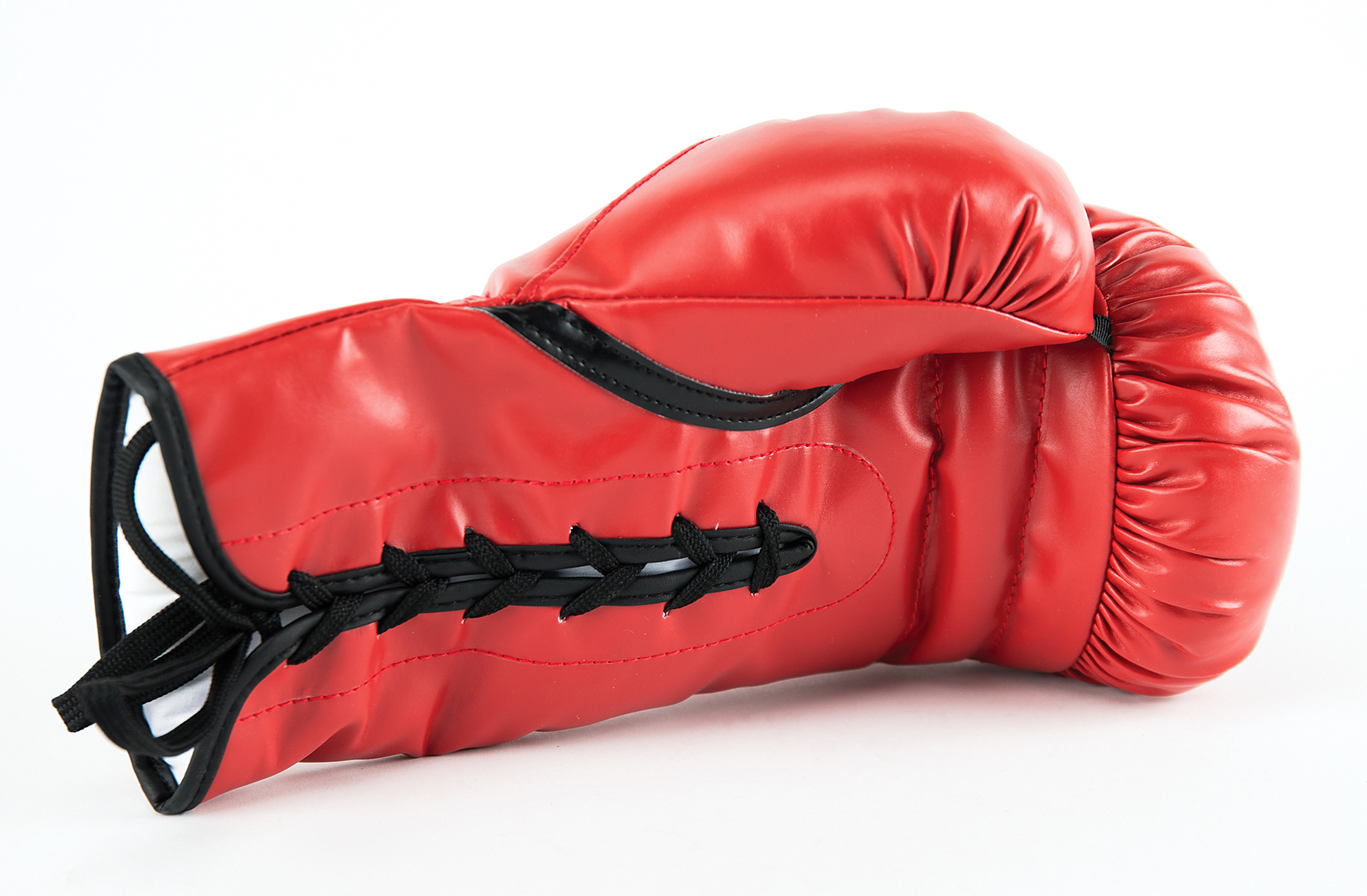 Red left-handed Everlast boxing glove, prominently signed in black felt tip by Mike Tyson. In very fine condition, with a PSA/DNA label affixed to the wrist (certificate of authenticity not present).